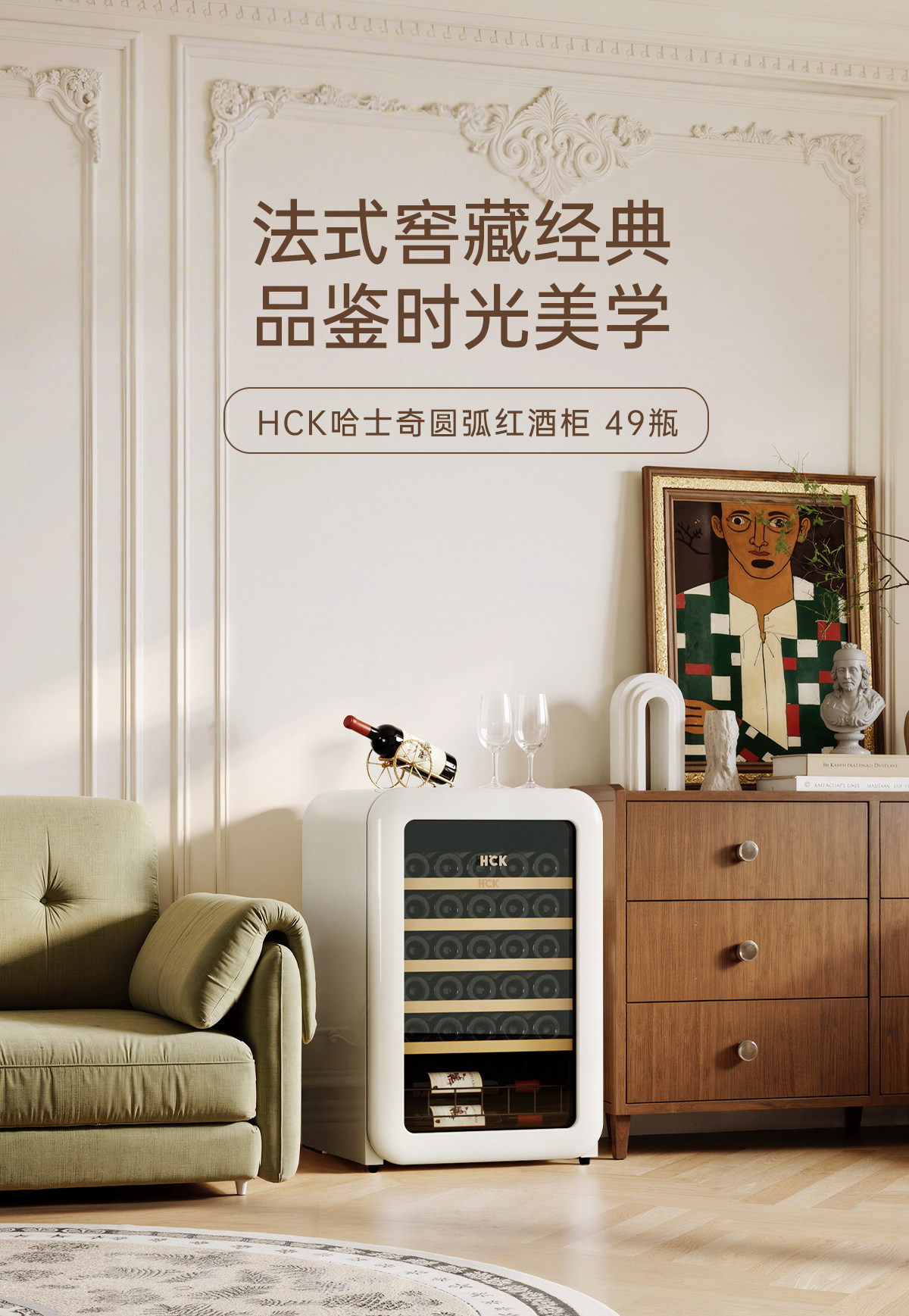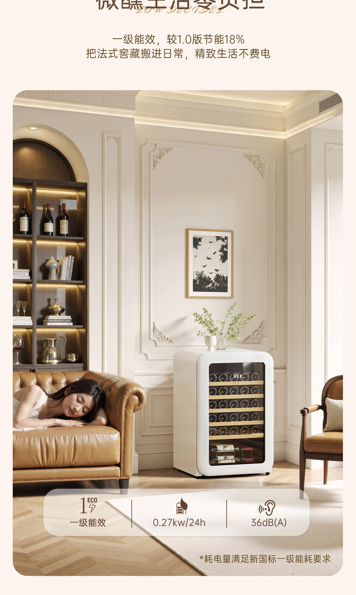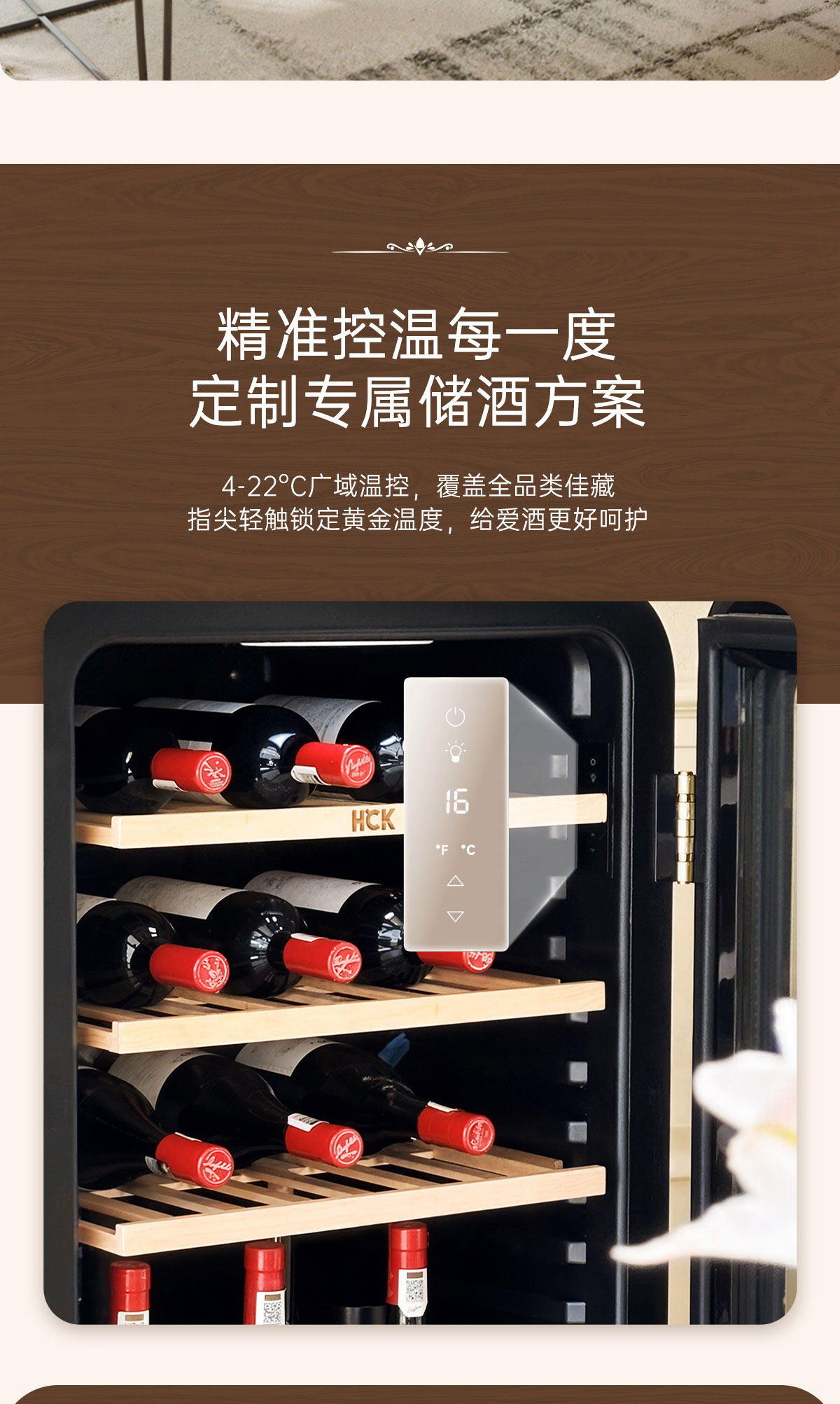 Hck Husky Vertical Freezer Retro Wine Cabinet Constant Temperature and Humidity First-Class Energy Efficiency Home Living Room Preservation 4020