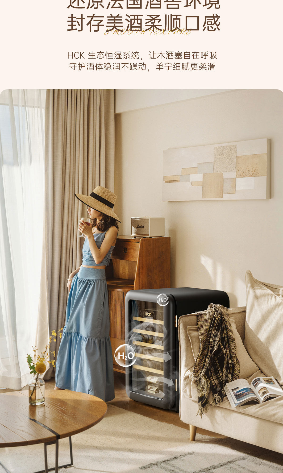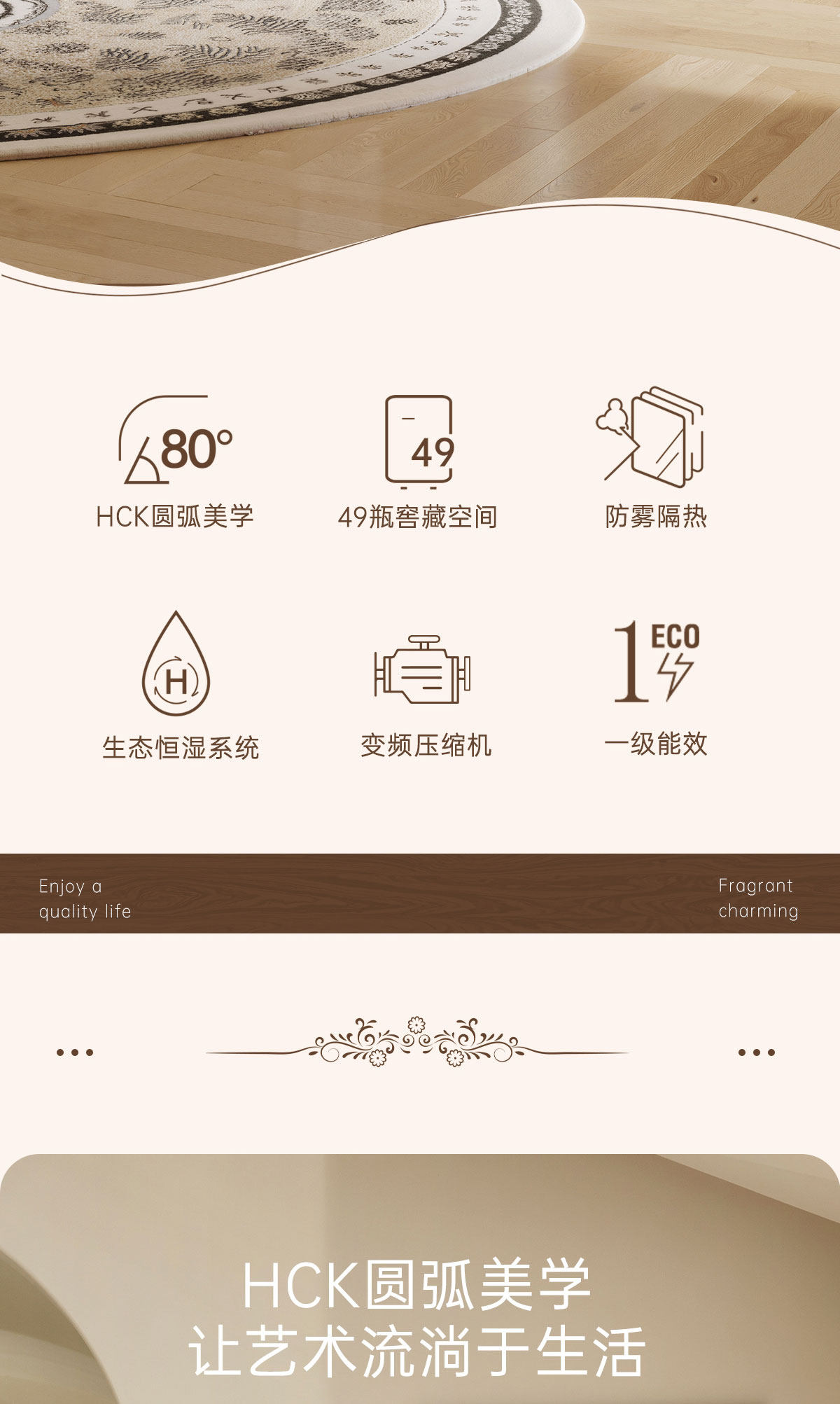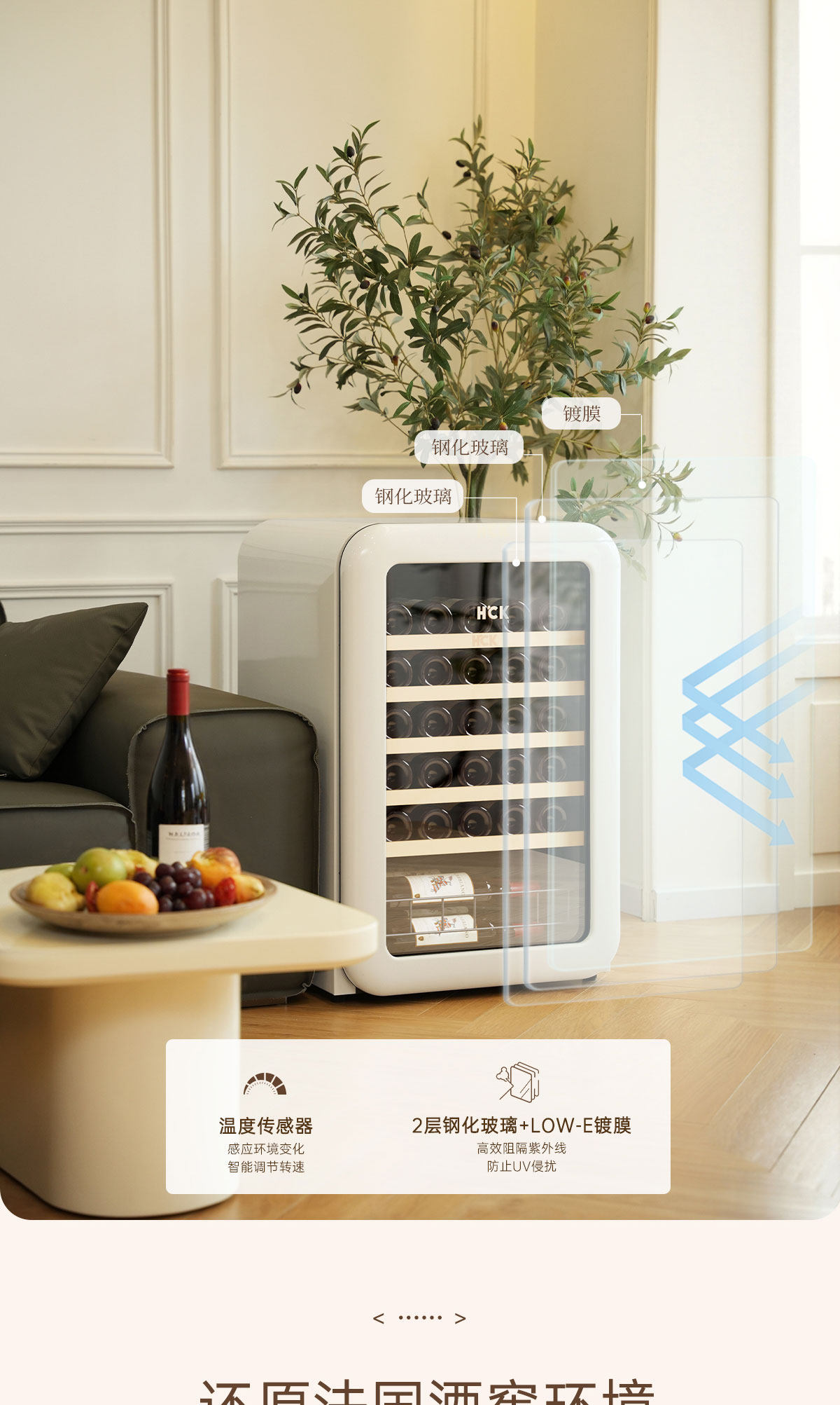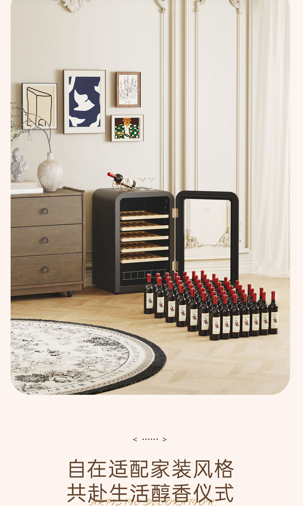Hck Husky Vertical Freezer Retro Wine Cabinet Constant Temperature and Humidity First-Class Energy Efficiency Home Living Room Preservation 4020