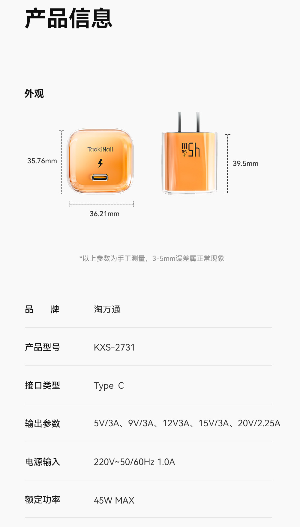 | Maximum Output Power of Single Port | 45 W |