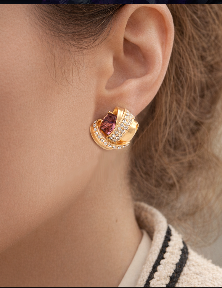 Eternelle French Eternal Gold-Plated Woven Evening Earrings for Women, Niche Design Earrings, Light Luxury and High-End Earrings