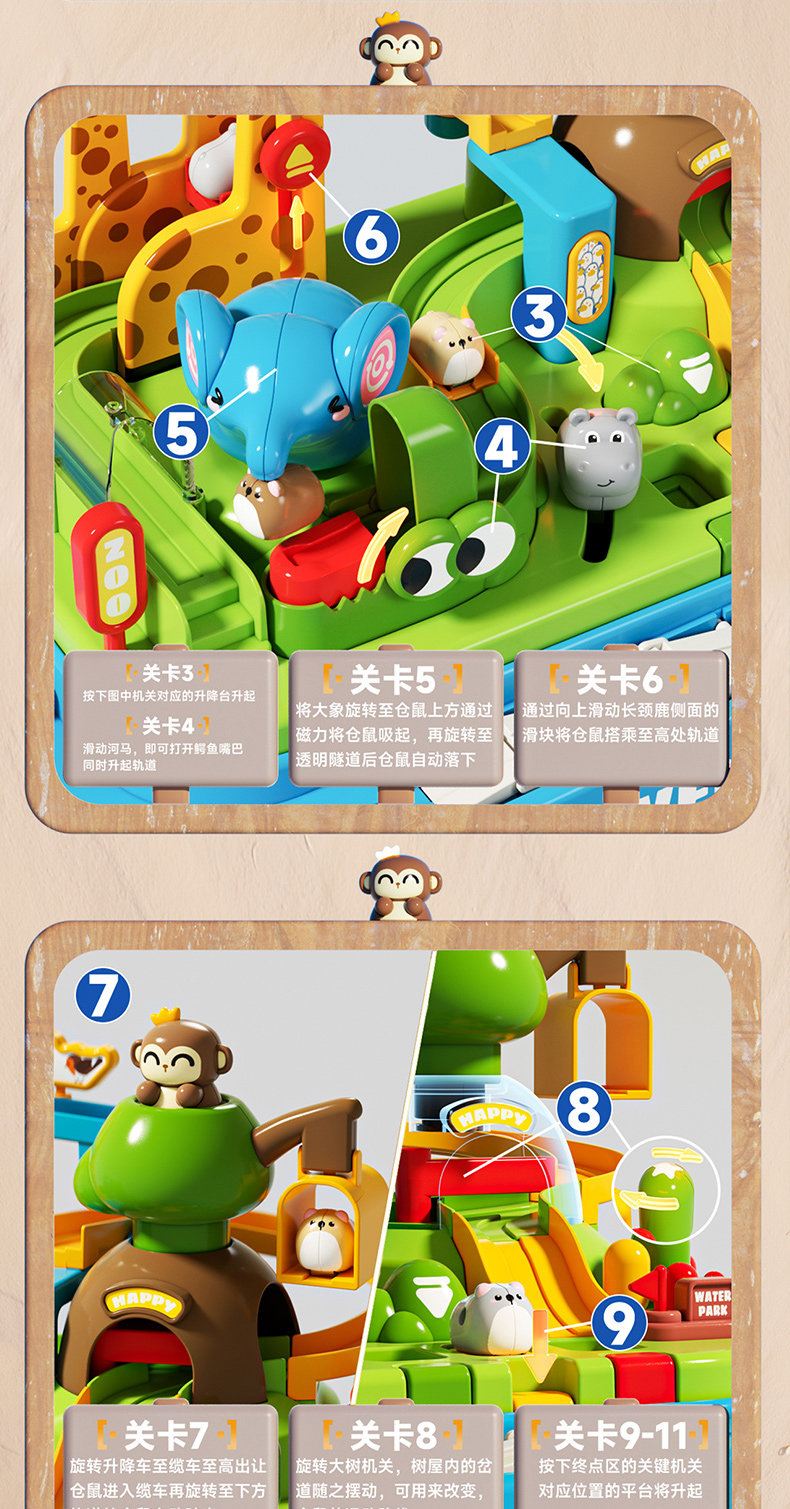 Children's Adventure Puzzle Toy for Boys Aged 3 to 6 and Above, 4-Mechanism Track Game for Boys