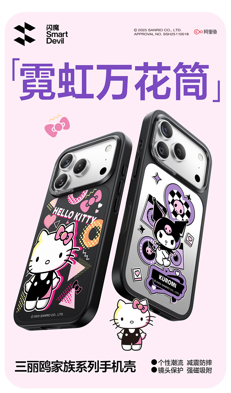 [Sanrio Officially Licensed] Flash Magic Compatible Apple 17 Phone Case iPhone 17 Pro Max Magnetic Protective Cover 16 Pro Shell 15 Pm New Model 14P Shockproof Hello Kitty Black