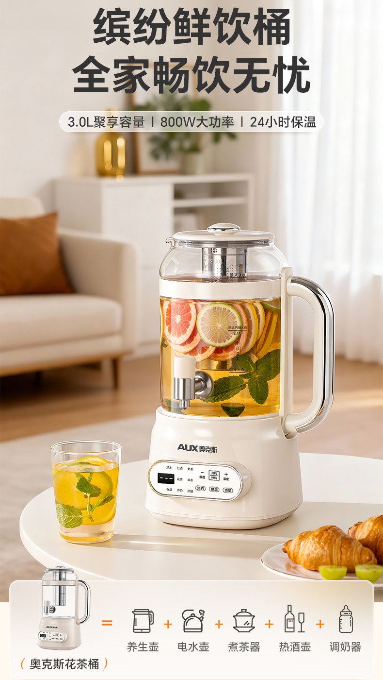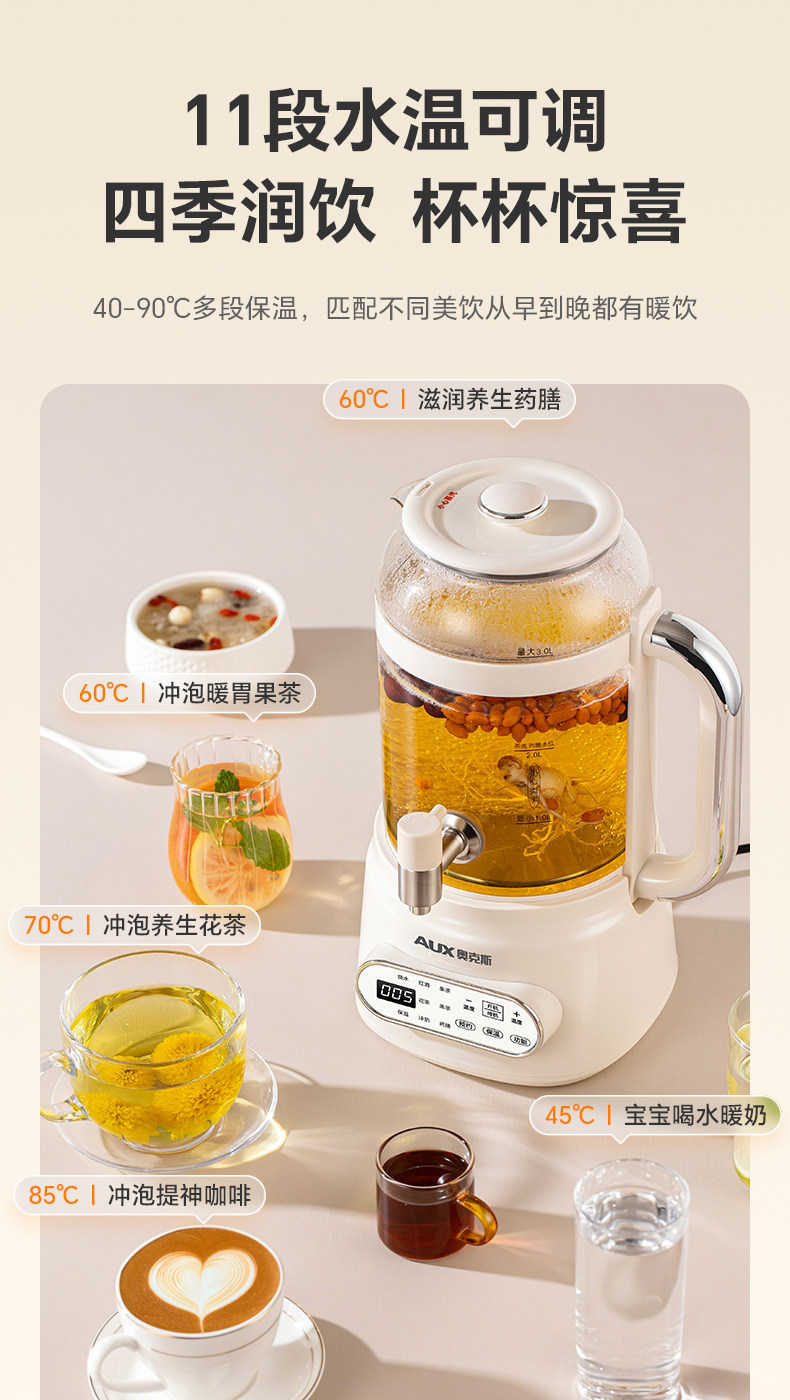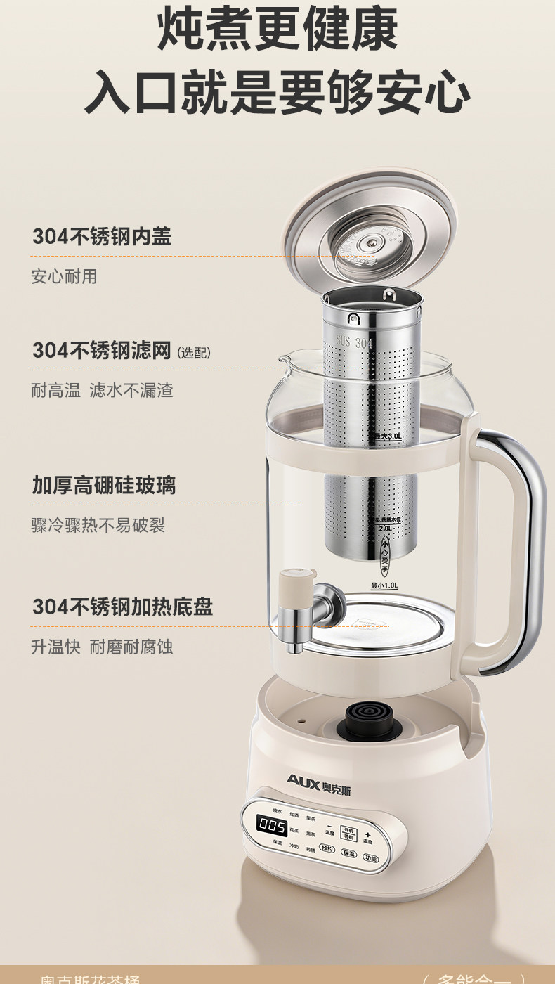 Oaks Faucet Health Pot Household Flower Tea Bucket Large Capacity Multi-Functional Insulation Stewing and Boiling Integrated Electric Kettle