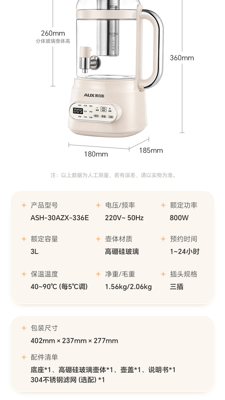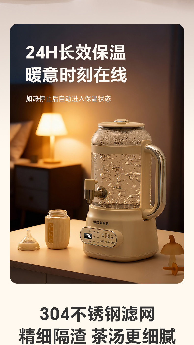 | Color Classification | 3L Off-White [Standard Model] 0 Glue/0 Odor + High Borosilicate Glass + 8 Function Menus,3L Off-White [Upgraded 304 Tea Infuser Model] Zero Glue/Zero Odor + High Borosilicate Glass + 8 Function Menus,3L [Standard Configuration] 24H Reservation/Heat Preservation + 8 Major Function Menus,3L [Tea Filter Model] 24H Reservation/Heat Preservation + 8 Major Function Menus |