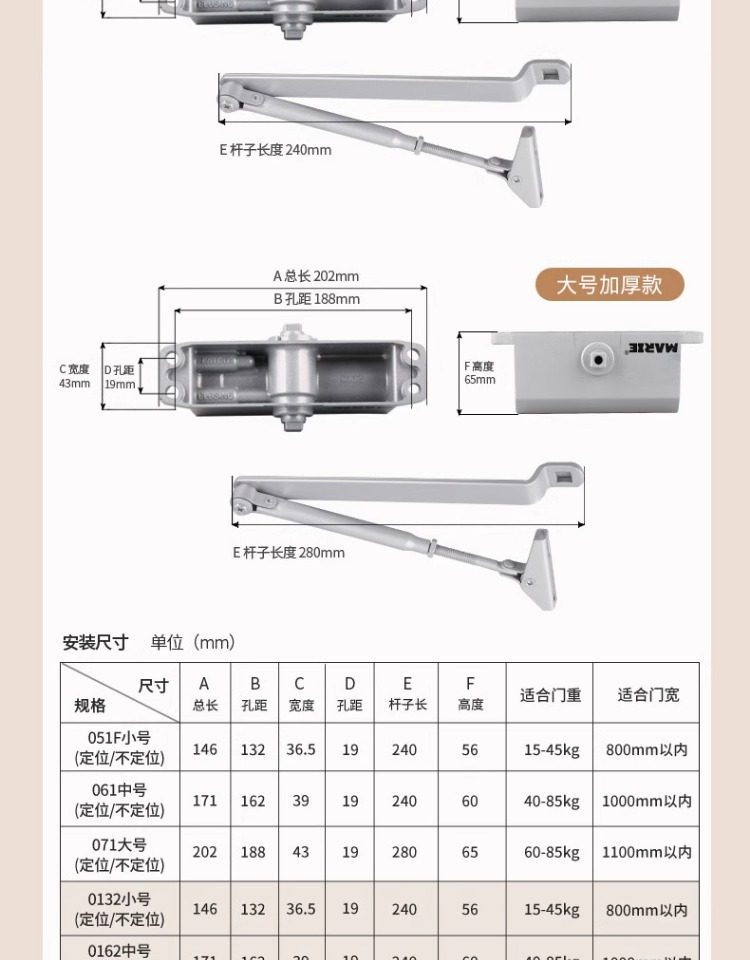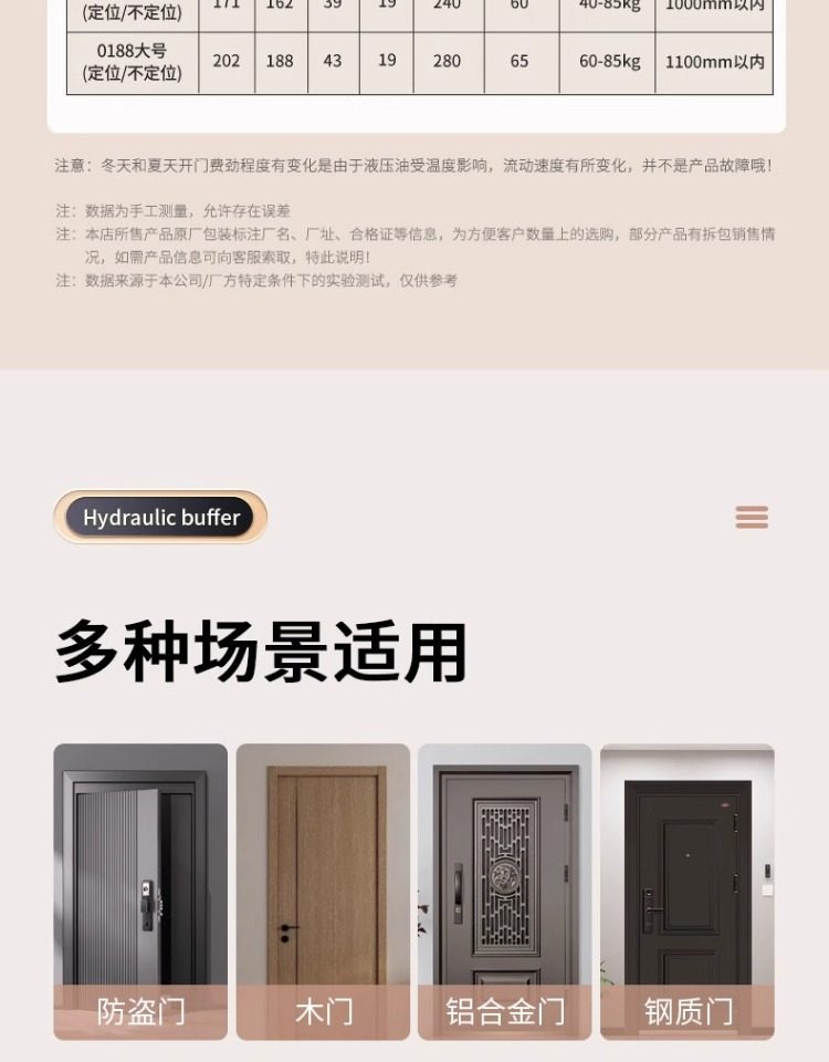 | Color Classification | [Engineering Model] Suitable for Door Weight 15-45kg, Silver Small Size, No Positioning,[Engineering Model] Suitable for Door Weight 40-85kg, Silver Medium Size, No Positioning,[Engineering Model] Suitable for Door Weight 60-85kg, Silver Large Size, No Positioning,【Premium Quality】Suitable for Door Weights 15-45kg, Silver, Small Size, Non-Positioning,[Quality Model] Suitable for Door Weight 40-85kg, Silver Medium Size, No Positioning,[Quality Model] Suitable for Door Weight 60-85kg, Silver Large Size, No Positioning,【Premium Quality】Suitable for Door Weights 15-45kg, Black, Small Size, Non-Positioning,[Quality Model] Suitable for Door Weight 40-85kg, Black Medium Size, No Positioning,[Quality Model] Suitable for Door Weight 60-85kg, Black Large Size, No Positioning,[Engineering Model] Suitable for Door Weight 15-45kg Silver Small Size Positioning,[Engineering Model] Suitable for Door Weight 40-85kg Silver Medium Size Positioning,[Engineering Model] Suitable for Door Weight 60-85kg Silver Large Size Positioning,【Premium Quality】Suitable for Door Weights 15-45kg, Silver, Small Size, Fixed Positioning,[Quality Model] Suitable for Door Weight 40-85kg Silver Medium Size Positioning,[Quality Model] Suitable for Door Weight 60-85kg Silver Large Size Positioning,【Premium Quality】Suitable for Door Weights 15-45kg, Black, Small Size, Fixed Positioning,[Quality Model] Suitable for Door Weight 40-85kg Black Medium Size Positioning,[Quality Model] Suitable for Door Weight 60-85kg Black Large Size Positioning |