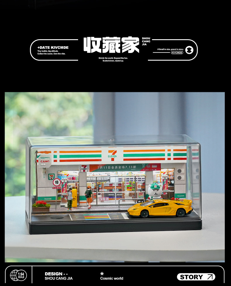 711 Convenience Store 1:64 Miniature Architectural Scene Model Handmade DIY Small House Assembly Toy Display Box Ornament