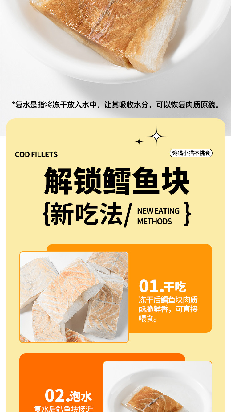 | Food Taste | Limited Time Offer: 100 Orders Only! Thick-Cut Cod Fillet (Freeze-Dried), Approximately 7-10 Pieces, Net Weight 20g.,[about 15~20 Pieces] Thick-Cut Cod Chunks (Selected Middle Section) Net Weight 50g,[about 30~40 Pieces] Thick-Cut Cod Chunks (Selected Mid-Section) Net Weight 100g,[about 60~80 Pieces] Thick-Cut Cod Chunks (Selected Middle Section) Net Weight 200g,[about 120~160 Pieces] Thick-Cut Cod Chunks (Selected Middle Section) Net Weight 400g |