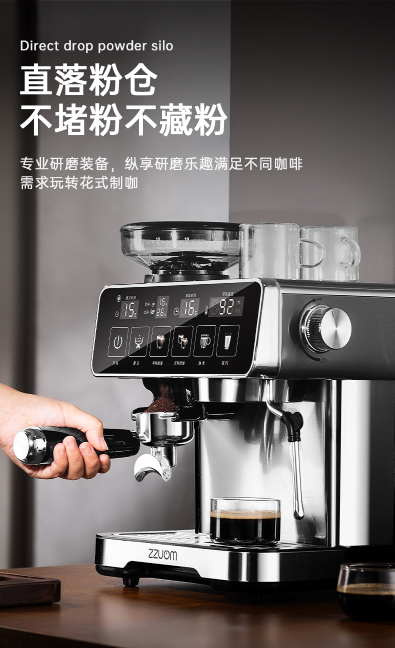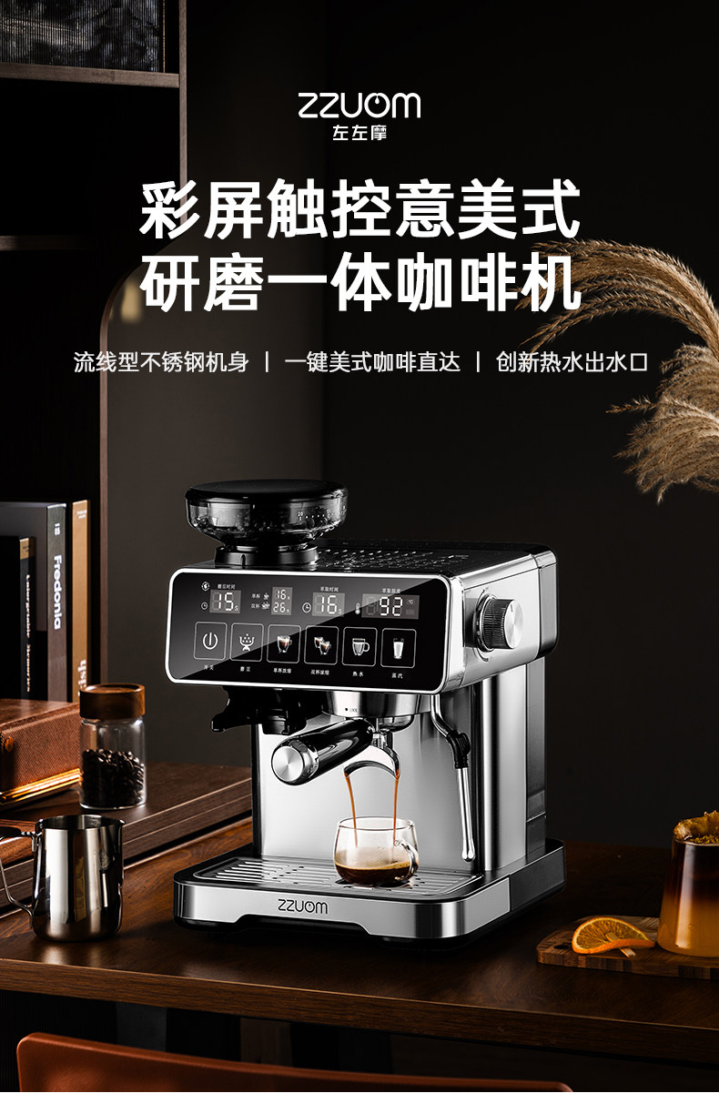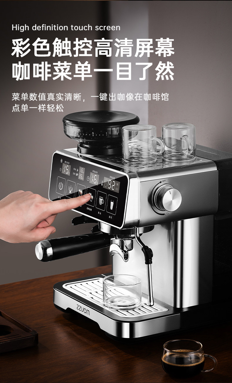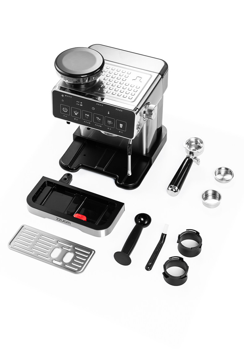 [New Product]Zuozuomao Coffee Machine, Small Size, Integrated Grinding, Semi-Automatic Espresso and Americano Coffee Maker with Milk Frother