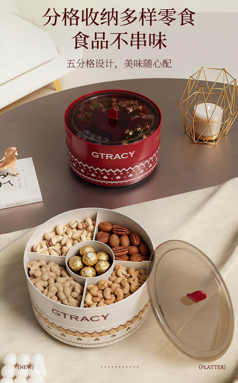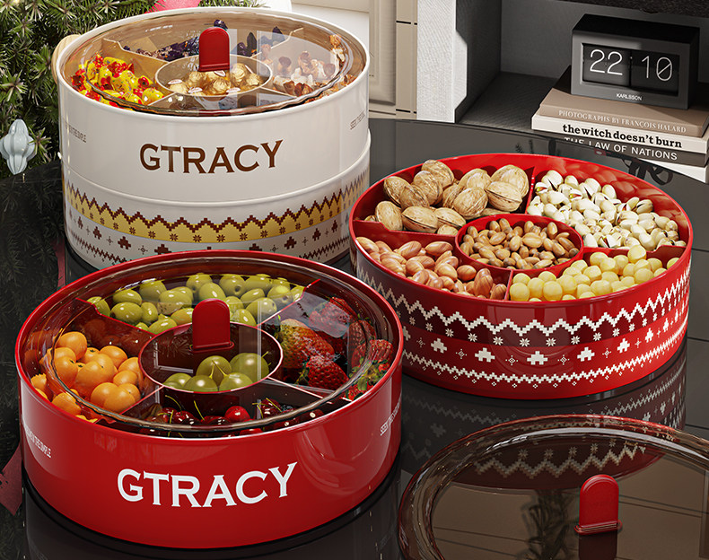 New Year's Fruit Plate for Living Room and Tea Room, High-End, Exquisite and Beautiful Display Plate for Fruits, Snacks, Nuts, Candies, Storage Box