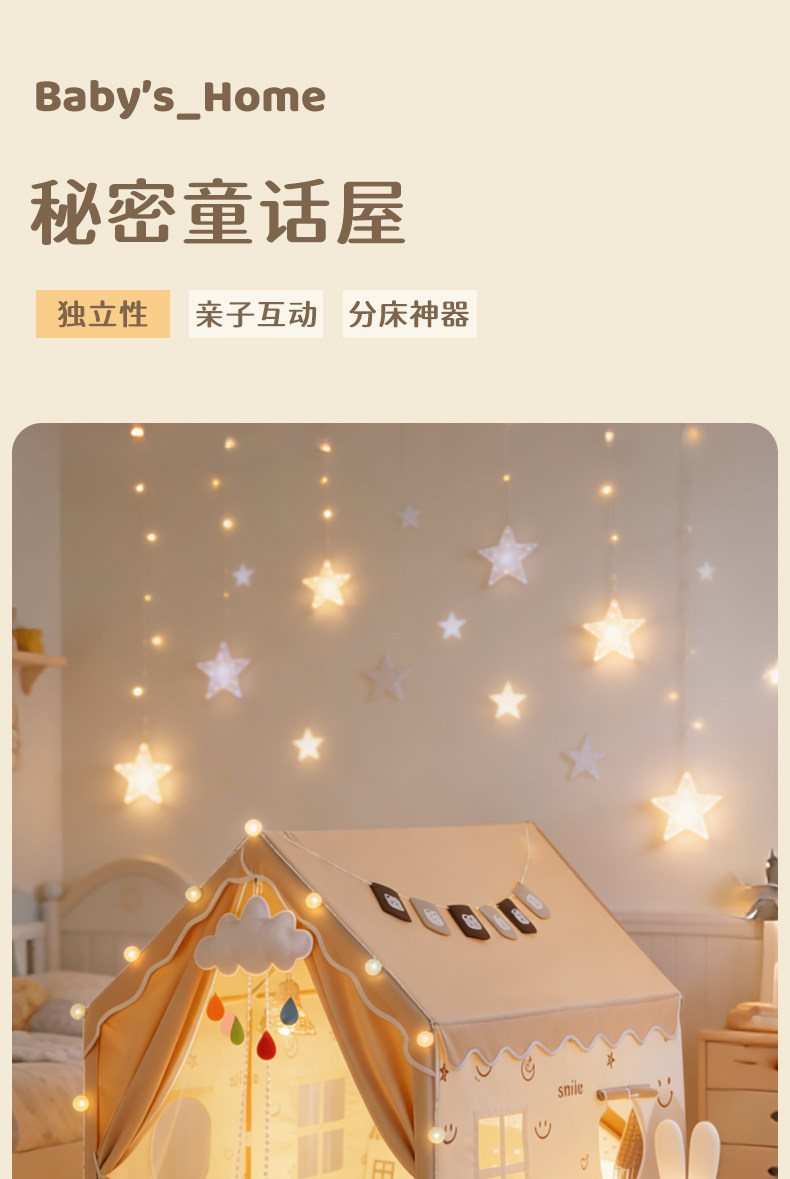 | Color Classification | 160cm Children's House [Double Door Curtain] (Free Bear Pennant + Clip),160cm Children's House [Double Door Curtain] (Comes with Candy Lights + Clouds + Bear Bunting + Clip),160cm Children's House [Double Door Curtain] + Rattan Lamp (Comes with Candy Lamp + Clouds + Bear Bunting + Clip),160cm Children's Playhouse [Double Door Curtain] + Thickened Cotton Pad (Free Candy Lights + Clouds + Bear Bunting + Clips),160cm Children's House [Double Door Curtain] + Rattan Lamp + Thickened Cotton Pad (Comes with Candy Lamp + Clouds + Bear Bunting + Clip),160cm Mushroom House [Double Door] (Free Bear Pennant Banner + Clips),160cm Mushroom House [Double Door] (Comes with Candy Lamp + Clouds + Bear Bunting + Clip),160cm Mushroom House [Double Door] + Rattan Lamp (Free Candy Lamp + Clouds + Bear Bunting + Clip),160cm Mushroom House [Double Door] + Thickened Cotton Pad (Free Candy Lamp + Clouds + Bear Bunting + Clip),160cm Mushroom House [Double Door] + Rattan Lamp + Thickened Cotton Pad (Free Candy Lamp + Clouds + Bear Bunting + Clip) |