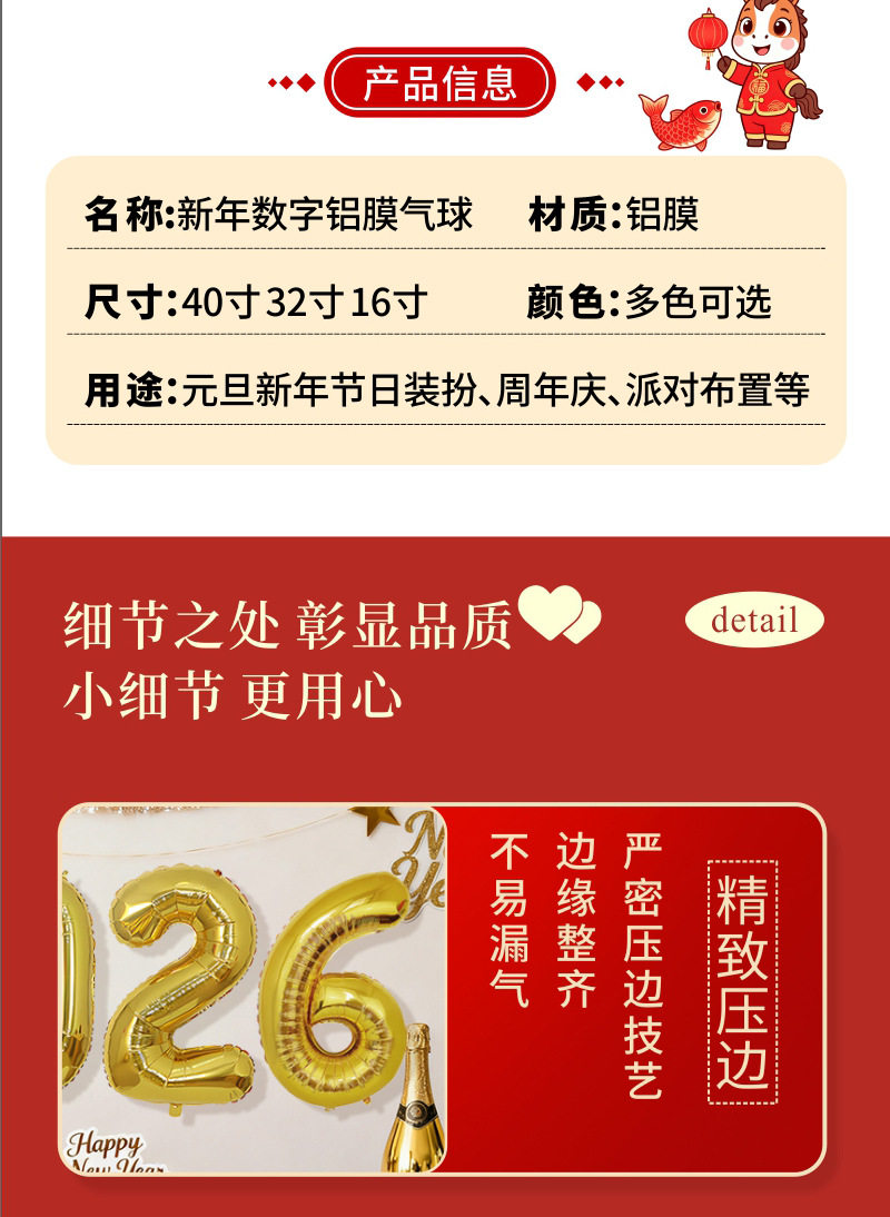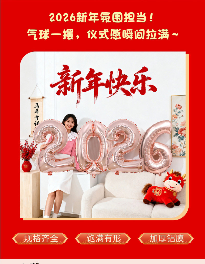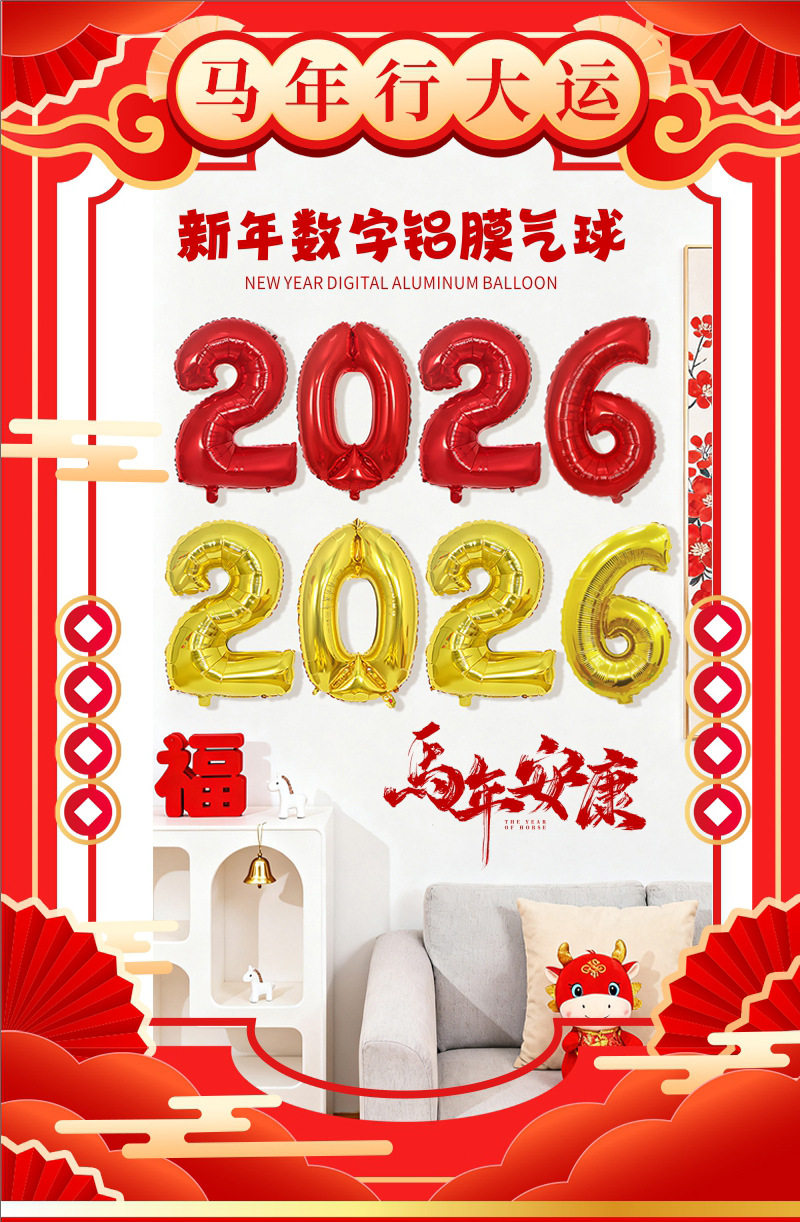 2026 Number Balloons Spring Festival New Year Decoration New Year's Eve Handheld Balloons Creative Photo Props Group Photo Photography