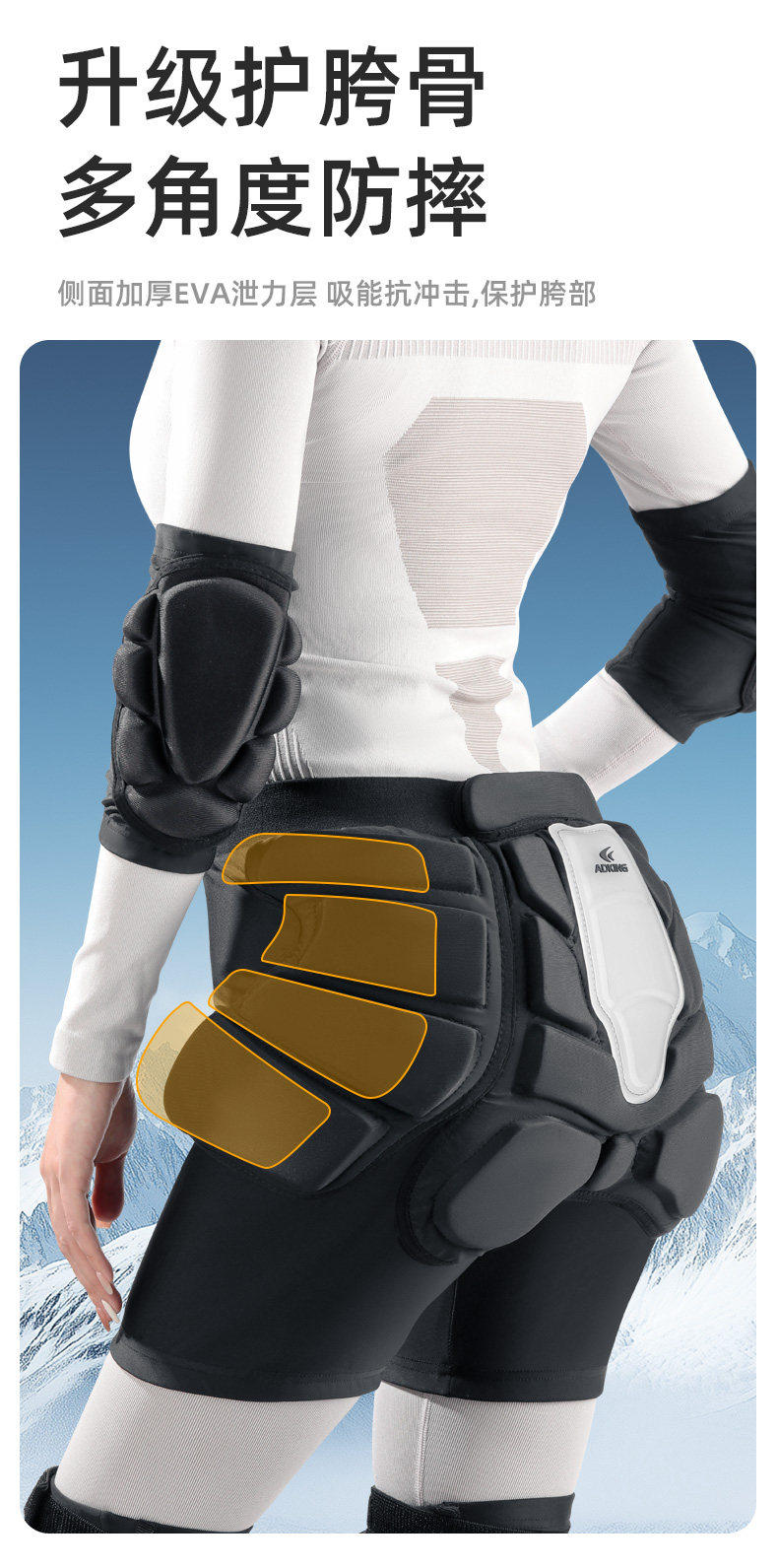 Ski Protective Gear, Hip Protection, Inner Wear Knee Pads, Anti-Freeze, Anti-Fall Butt Pads, Hip Pads, Hip Pants, Elbow Pads, Inner Protective Gear Set