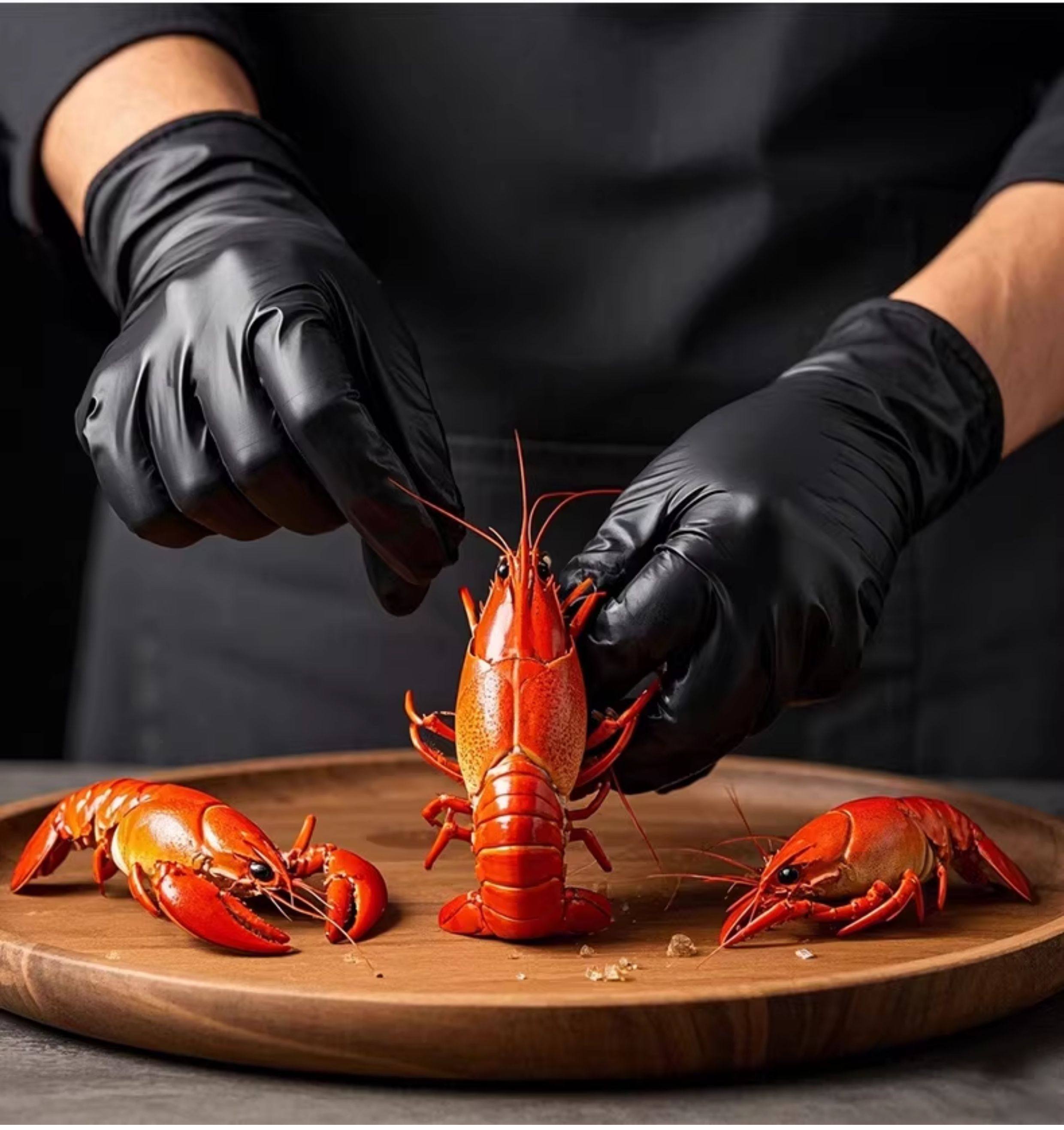 Gloves for Catering, Chef's Kitchen, Cooking, Disposable, Food-Grade Latex, Black, Commercial, Thickened for Cutting Meat