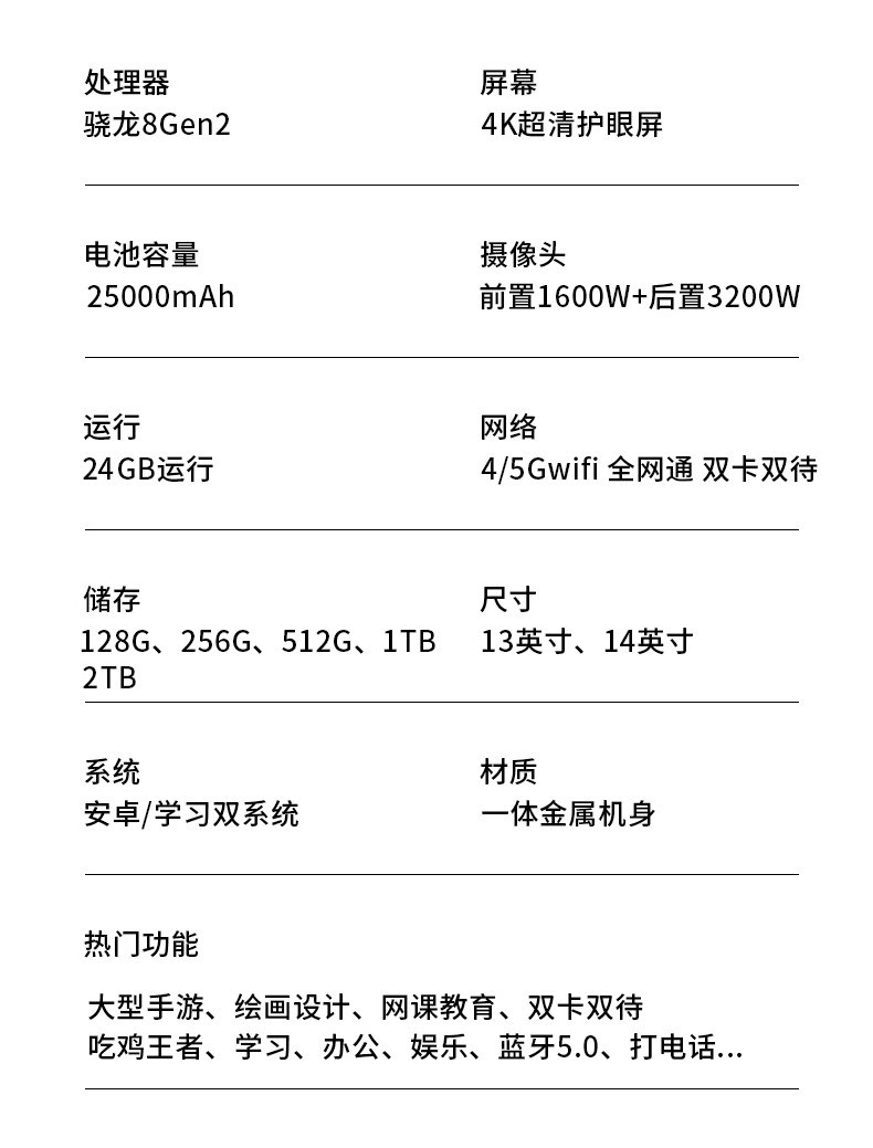 | Network Type | 【Flagship Edition】16Gb Ram + Expandable 4G/5G Connectivity with Wi-Fi,【Flagship Edition】16Gb Ram + Expandable 4G/5G Connectivity with Wi-Fi,【14inch Ultimate Edition】24Gb Ram + Expandable 4G/5G Connectivity with Wi-Fi |