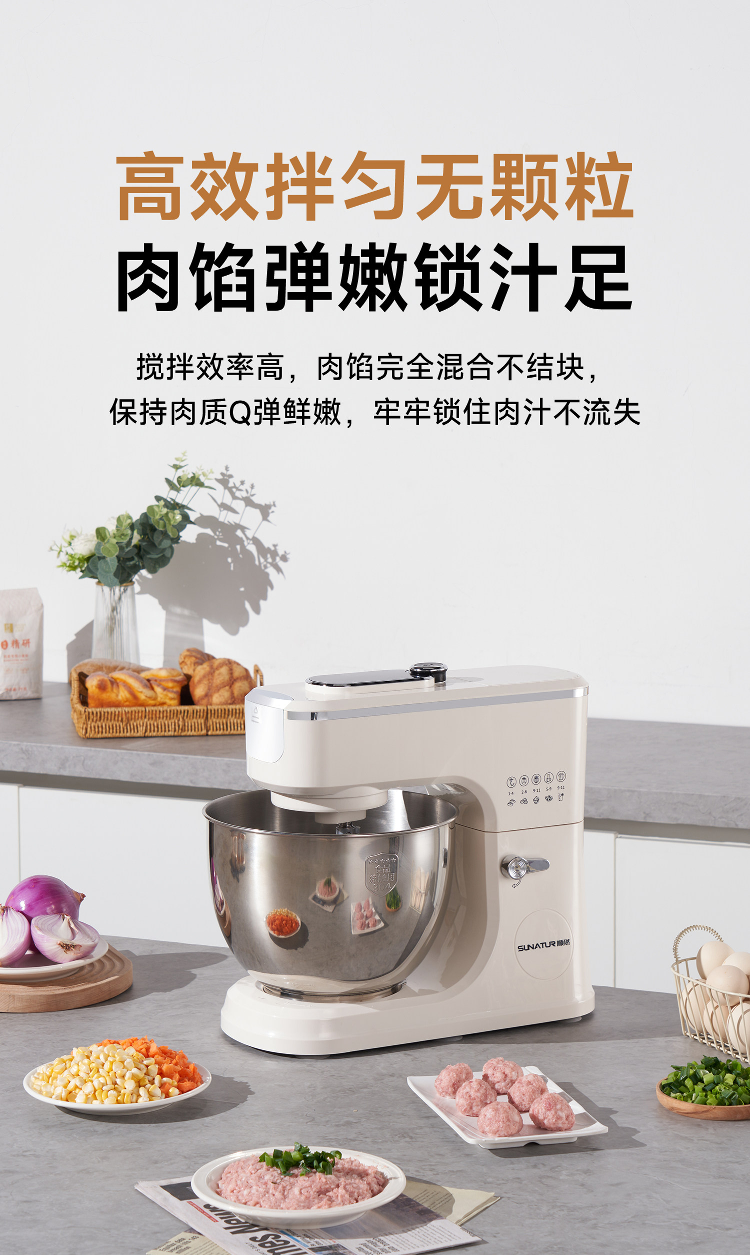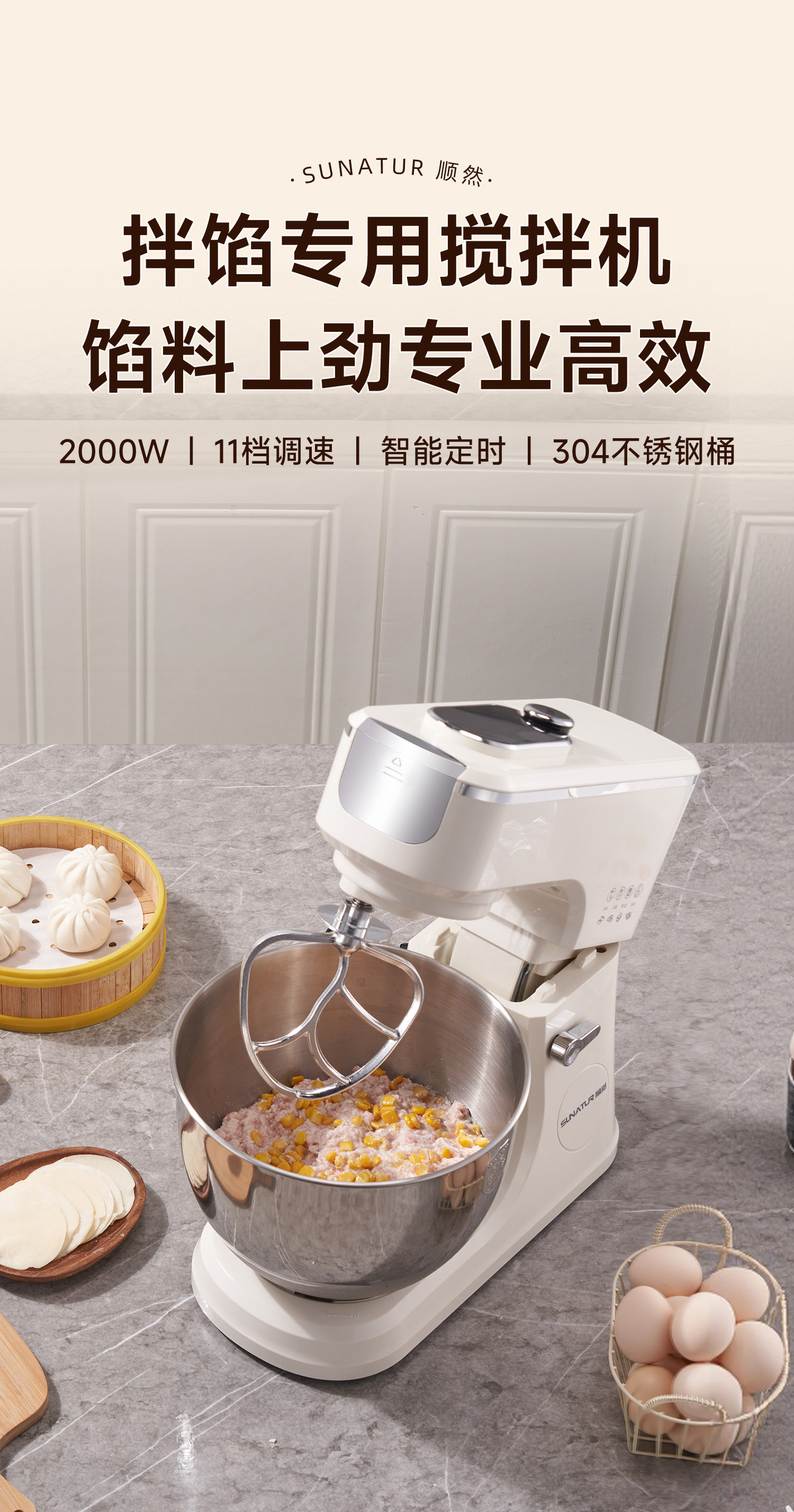 Shunran 3008 Stuffing Mixer, Commercial Automatic Meat Stuffing Mixer, Multifunctional Wonton Stuffing Mixer