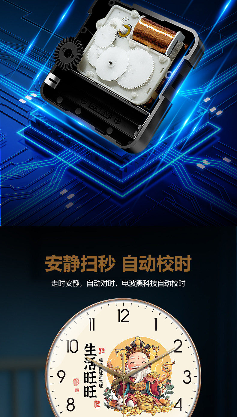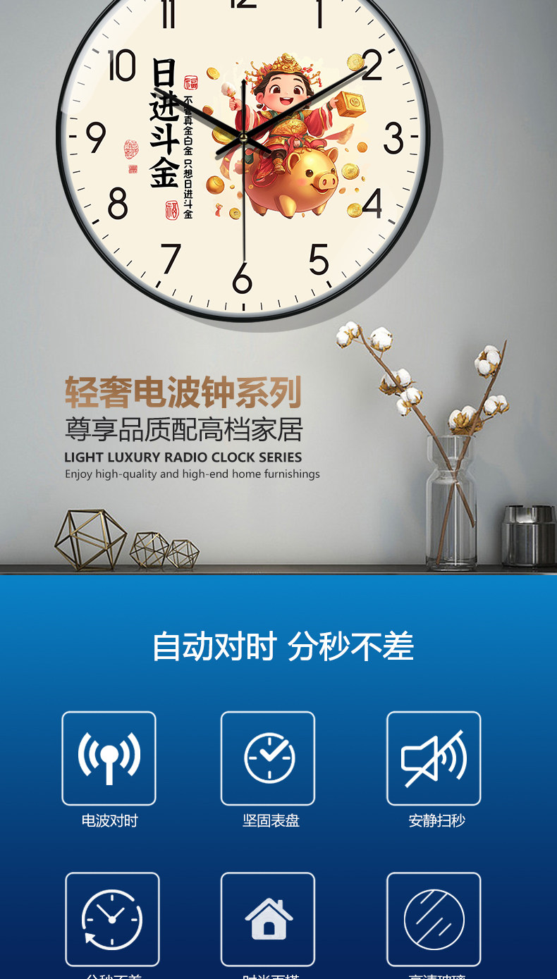 Suning.Com Second-Hand Clocks, Wall Clocks, Modern Minimalist Living Room Creative Home Wall-Mounted Radio-Controlled Clock 2129
