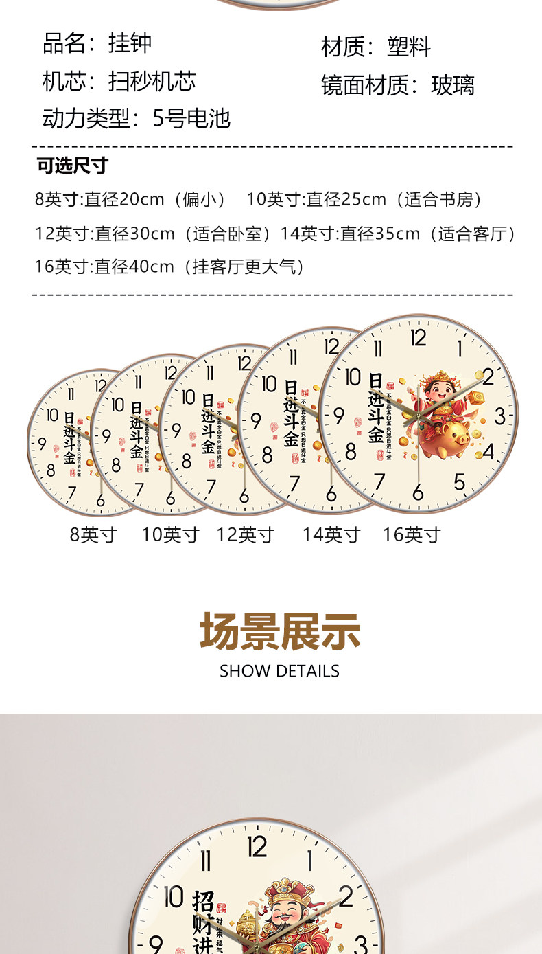 | Size | 8inch (Diameter 20cm) Is Too Small,10inch (Diameter 25cm) Suitable for Study,12inch (Dia. 30cm) for Bedroom,14inch (Diameter 35cm) Is Suitable for the Living Room,16inch (Diameter 40cm) Hanging in the Living Room Is More Elegant |