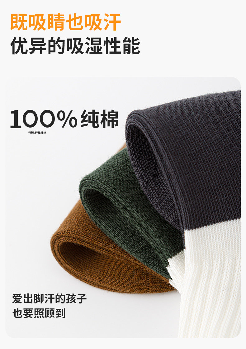 100% Pure Cotton Sports Seamless Six-Finger Socks for Boys, Children's Socks, All-Cotton Winter Autumn and Winter Socks for Older Children