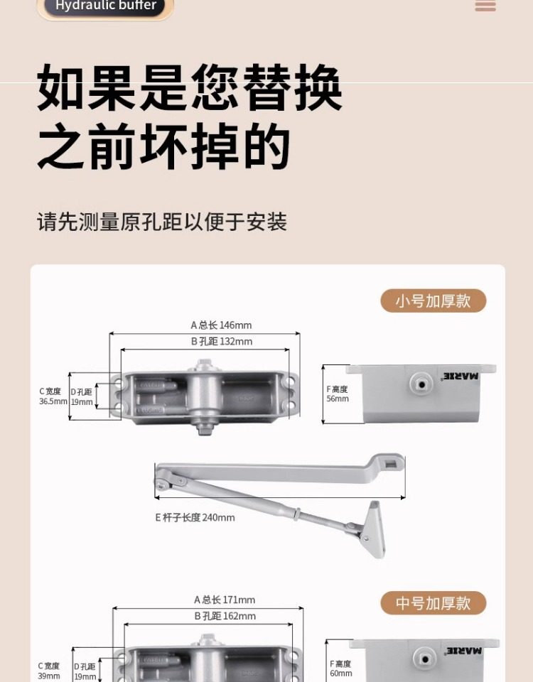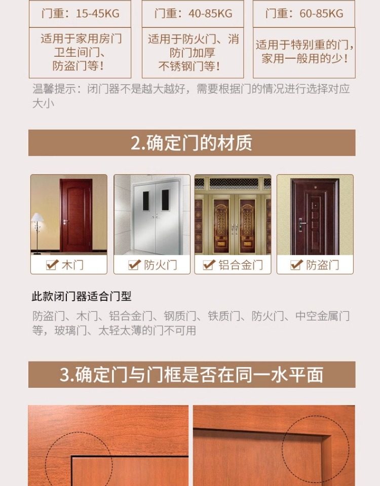 | Color Classification | [Engineering Model] Suitable for Door Weight 15-45kg, Silver Small Size, No Positioning,[Engineering Model] Suitable for Door Weight 40-85kg, Silver Medium Size, No Positioning,[Engineering Model] Suitable for Door Weight 60-85kg, Silver Large Size, No Positioning,【Premium Quality】Suitable for Door Weights 15-45kg, Silver, Small Size, Non-Positioning,[Quality Model] Suitable for Door Weight 40-85kg, Silver Medium Size, No Positioning,[Quality Model] Suitable for Door Weight 60-85kg, Silver Large Size, No Positioning,【Premium Quality】Suitable for Door Weights 15-45kg, Black, Small Size, Non-Positioning,[Quality Model] Suitable for Door Weight 40-85kg, Black Medium Size, No Positioning,[Quality Model] Suitable for Door Weight 60-85kg, Black Large Size, No Positioning,[Engineering Model] Suitable for Door Weight 15-45kg Silver Small Size Positioning,[Engineering Model] Suitable for Door Weight 40-85kg Silver Medium Size Positioning,[Engineering Model] Suitable for Door Weight 60-85kg Silver Large Size Positioning,【Premium Quality】Suitable for Door Weights 15-45kg, Silver, Small Size, Fixed Positioning,[Quality Model] Suitable for Door Weight 40-85kg Silver Medium Size Positioning,[Quality Model] Suitable for Door Weight 60-85kg Silver Large Size Positioning,【Premium Quality】Suitable for Door Weights 15-45kg, Black, Small Size, Fixed Positioning,[Quality Model] Suitable for Door Weight 40-85kg Black Medium Size Positioning,[Quality Model] Suitable for Door Weight 60-85kg Black Large Size Positioning |