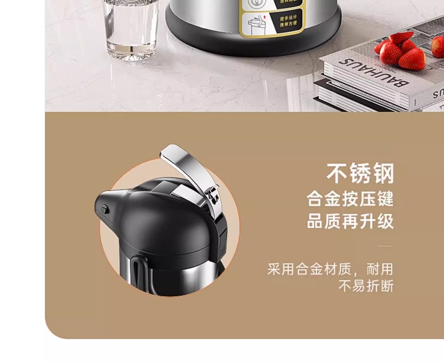 Press-Type Hot Water Kettle, Thermos, Tea Bottle, Boiling Water Bottle, Thermos Flask, Hot Water Bottle, Large-Capacity Household Thermos