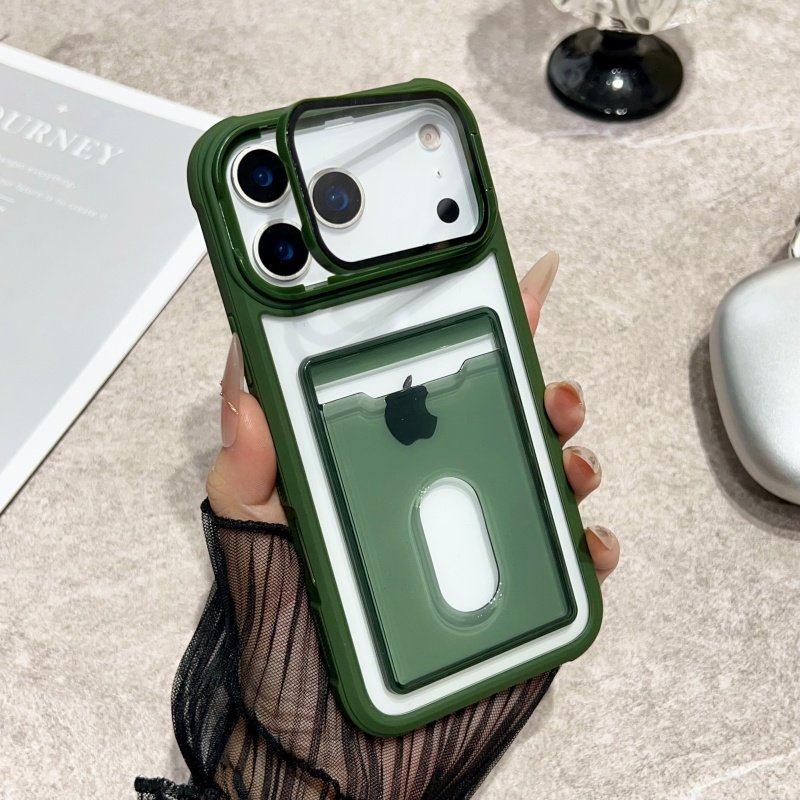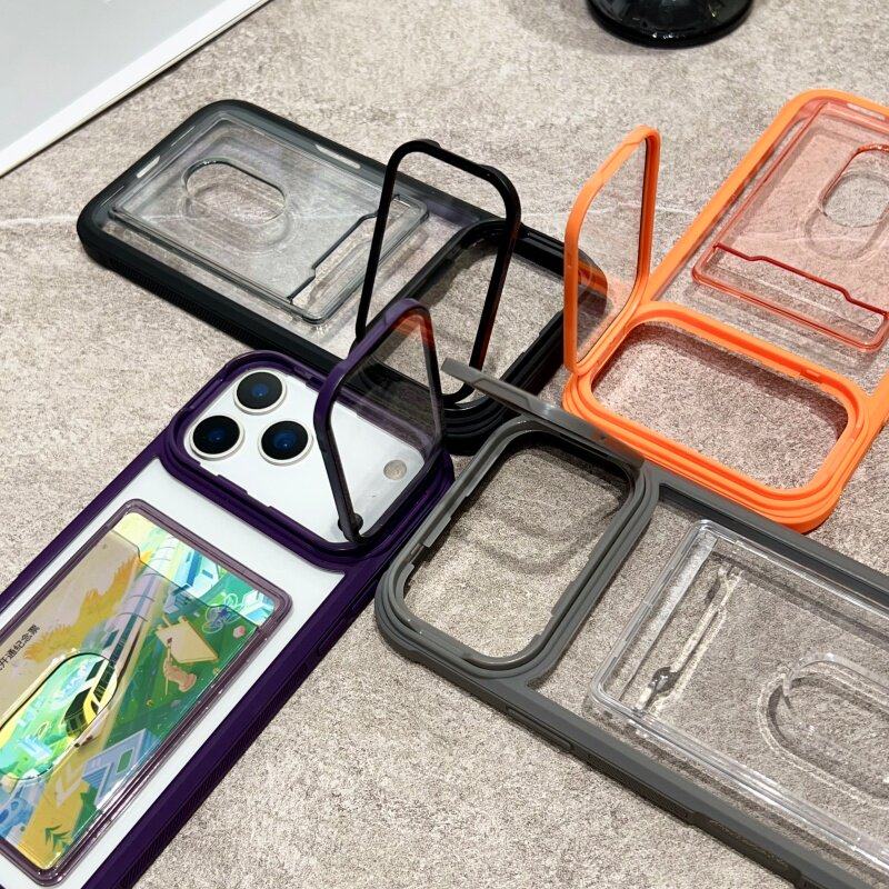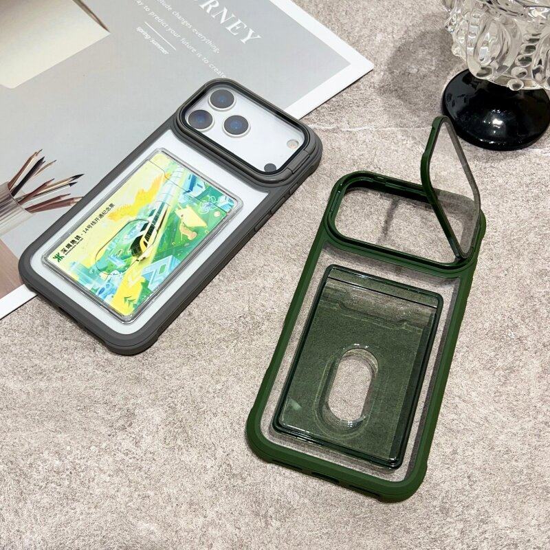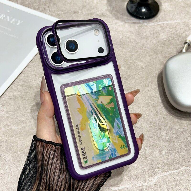 New Transparent Card Slot Case Suitable for Apple 17 Pro Max Phone Case, iPhone 16 Pro Anti-Drop, 15 Card Holder Integrated, 14 Card Slot Type, 13 with Frame Stand, 12 for Id Card, 11 Card Slot Protective Case