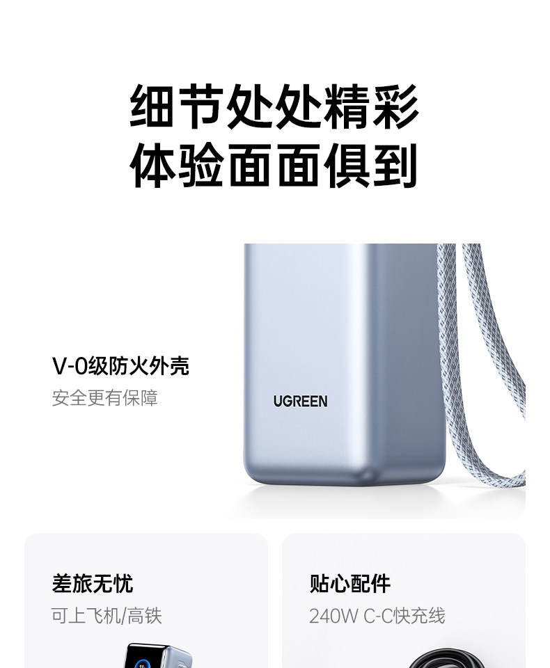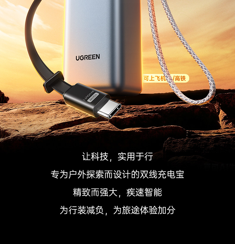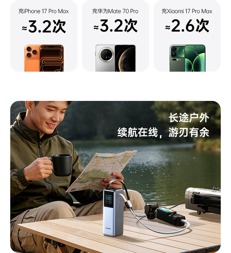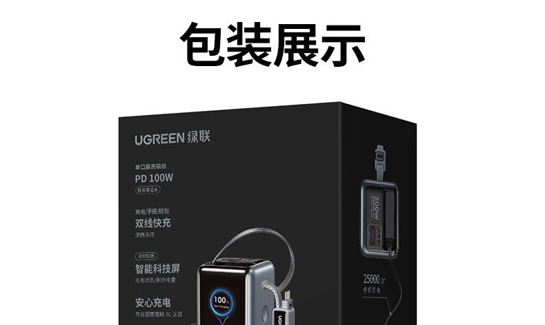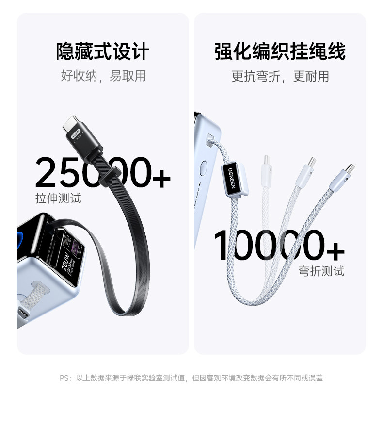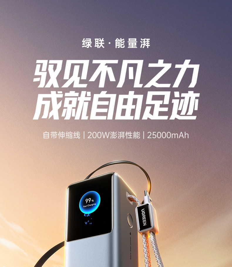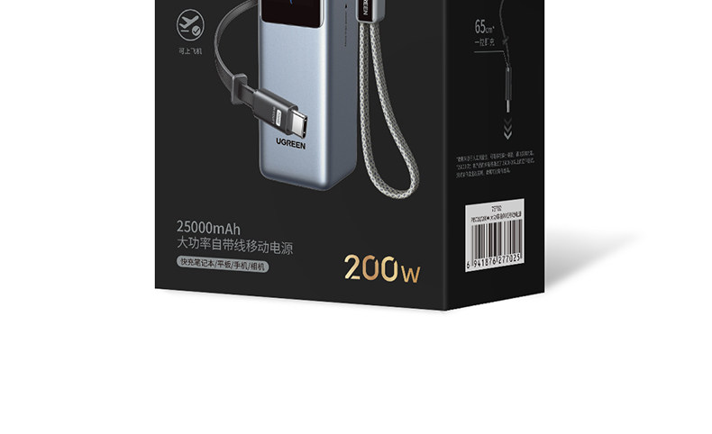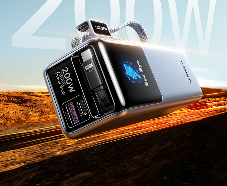 [Power Bank with 3C Certification, Airline Approved]Ugreen Energy Power New Model 200W with Built-In Retractable Cable, Fast Charging 25000Mah, Compatible with Apple 17, Xiaomi, Laptop, Official Flagship