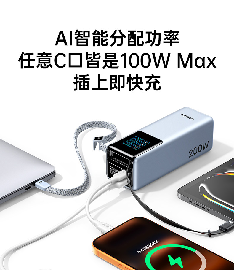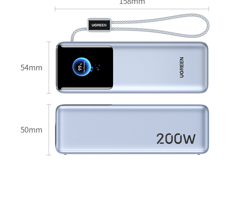 | Color Classification | Hot New Product Launch! 3C Certified and Carry-On Friendly on Flights and High-Speed Trains!,Energy Surge [Built-In Retractable Cable + Lanyard]⭐200W Fast Charge⭐Tft Smart Window |