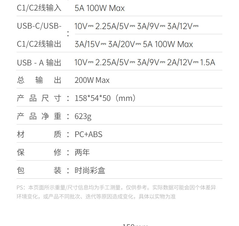 | Size | 158x54x50mm |