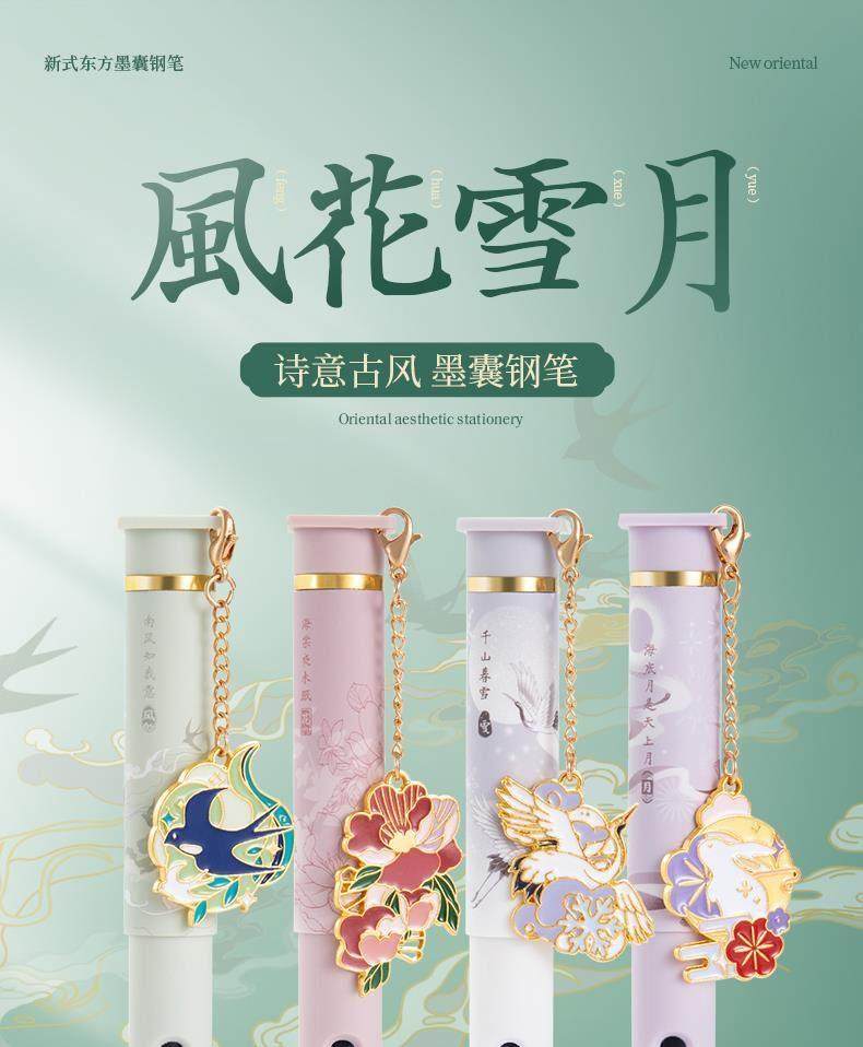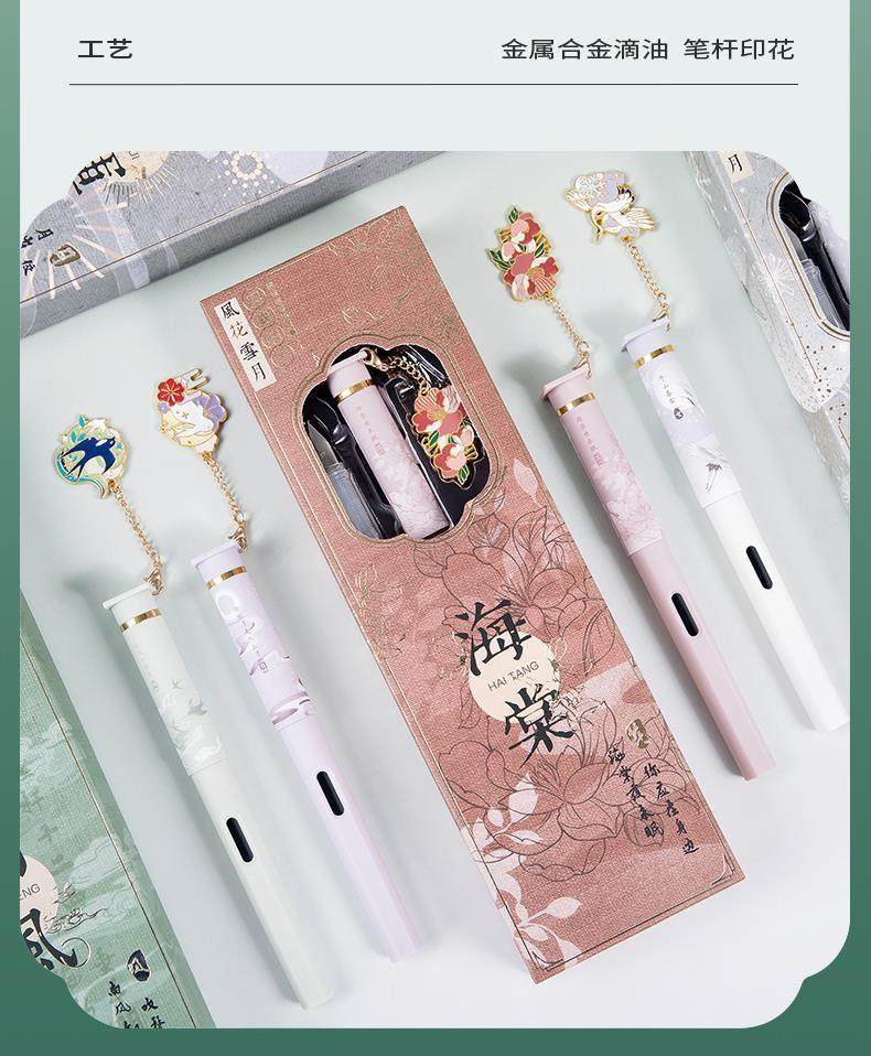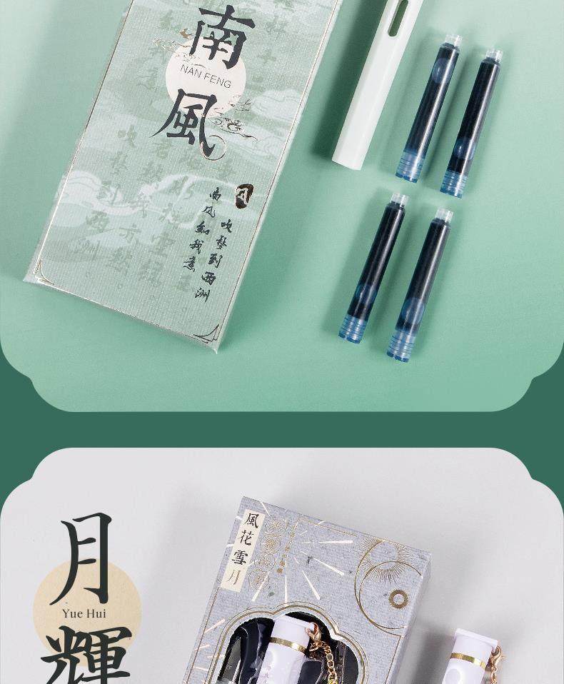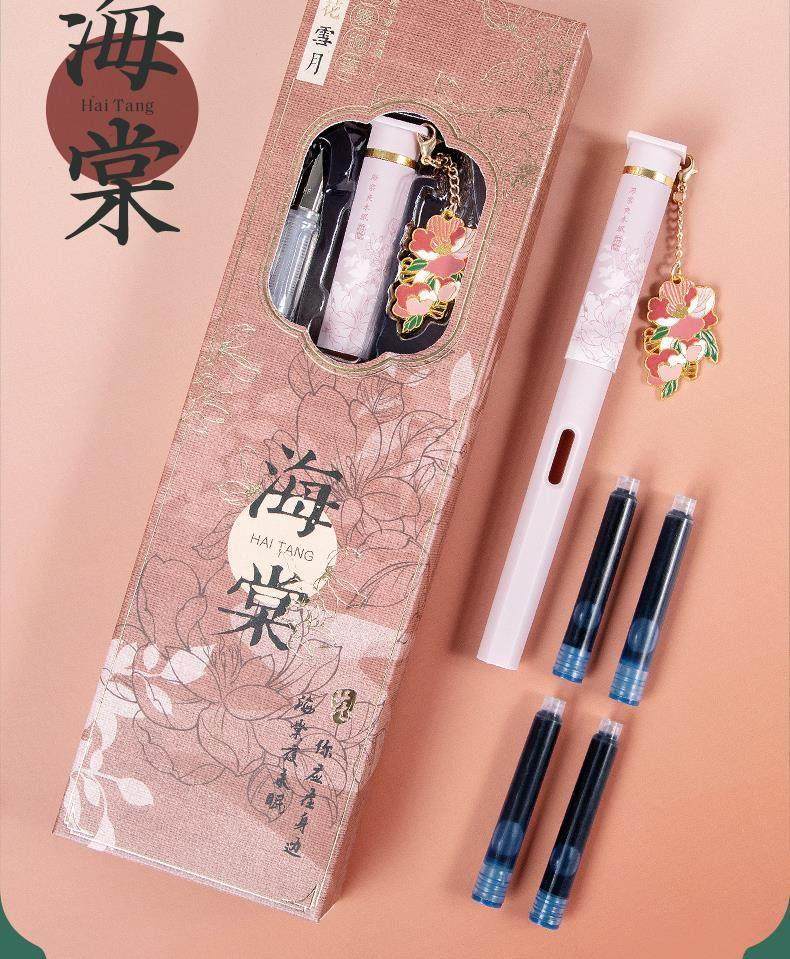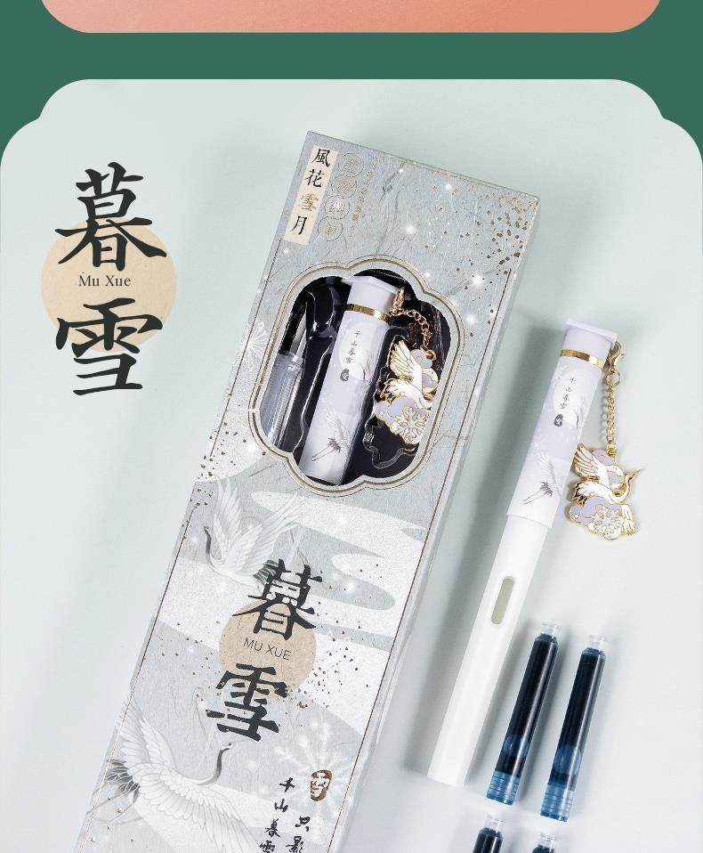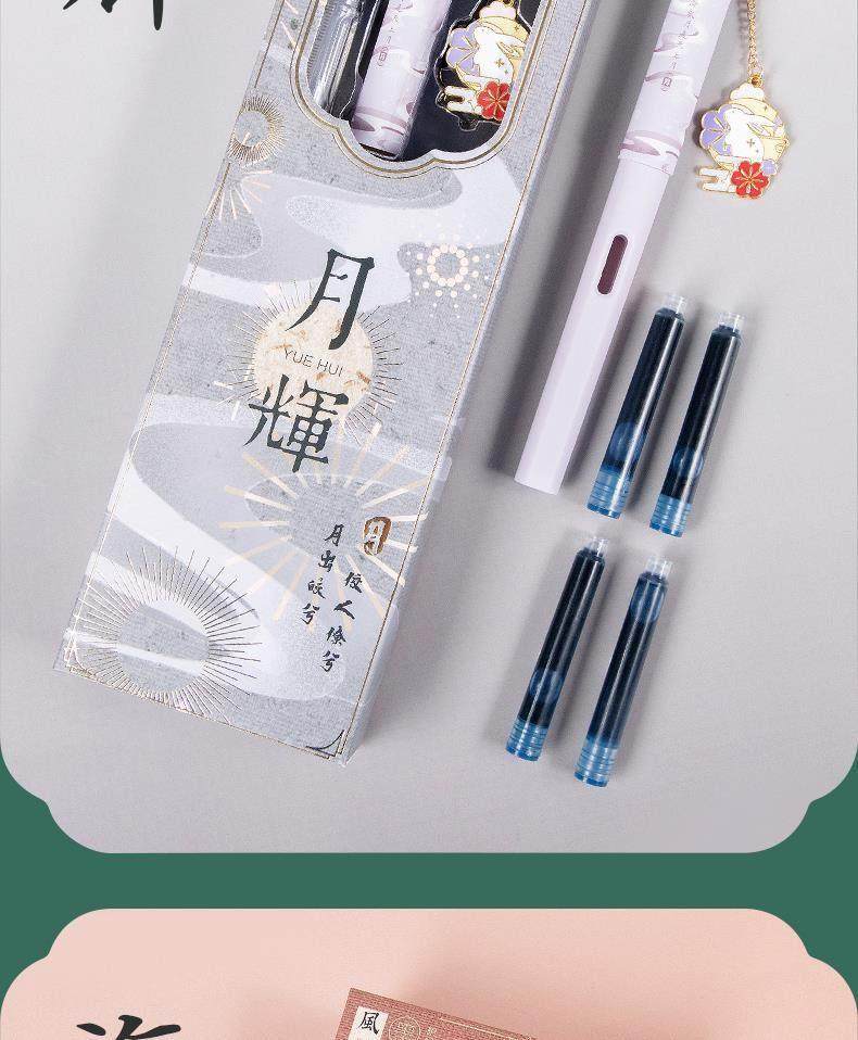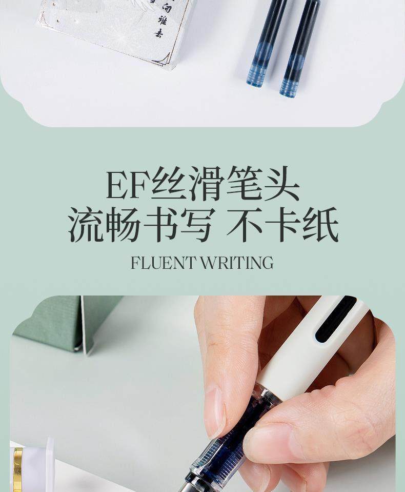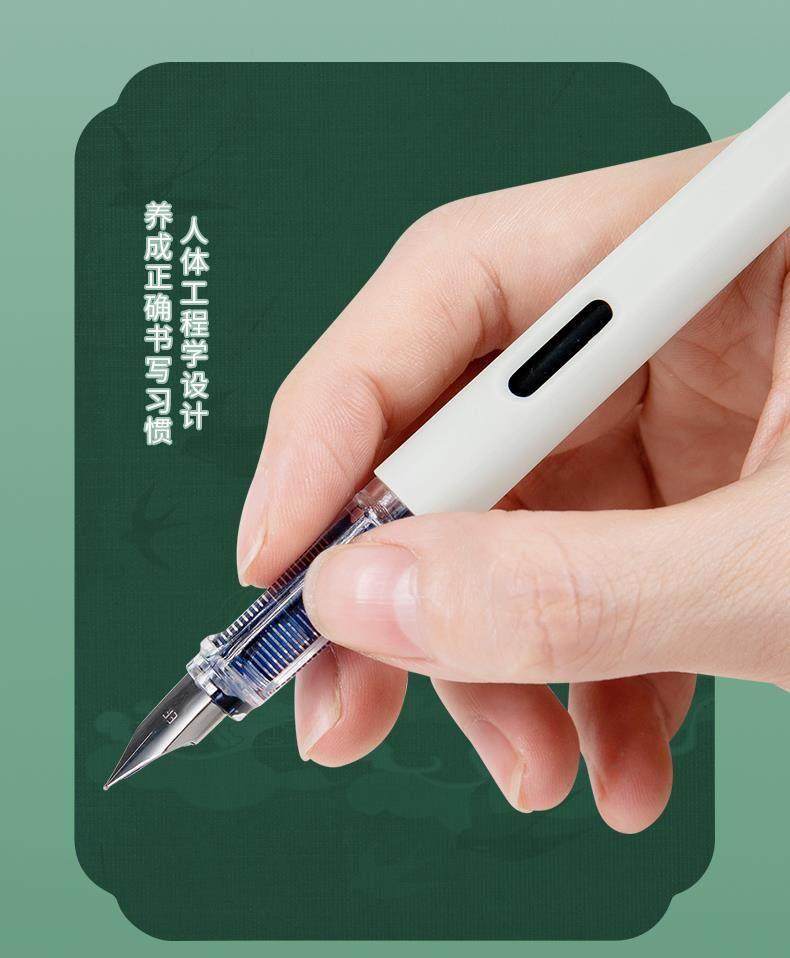 Chinese-Style Fountain Pen for Students, Suitable for Third-Grade and Fourth-Grade Primary School Students, with Replaceable Ink Cartridges, for Girls, Literary Youth, Boys, Retro, Beginner, Calligraphy Practice, Quick-Drying, High Aesthetic Value, Gift Box
