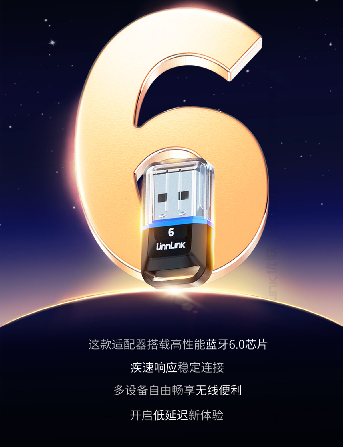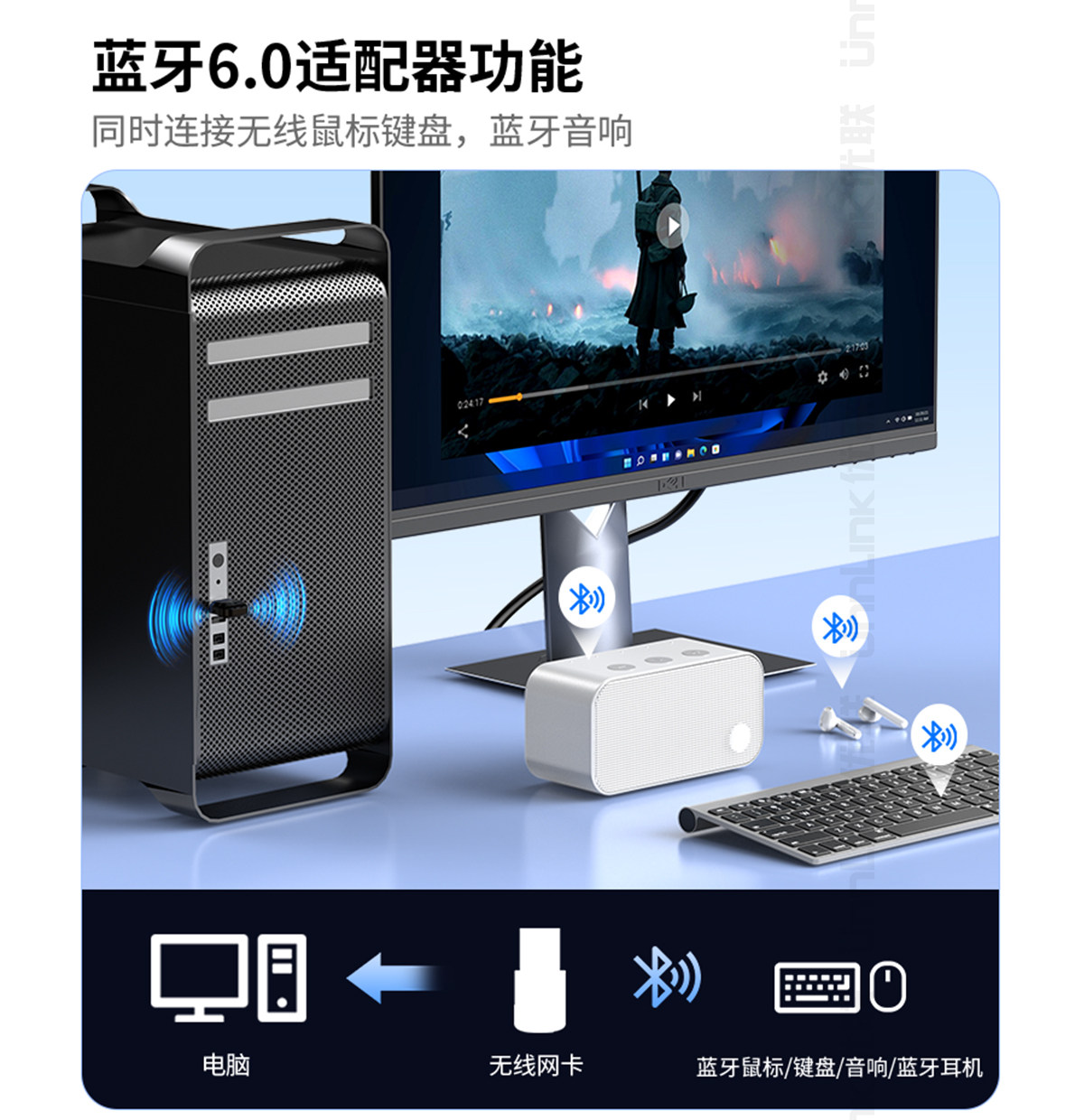6.0 Bluetooth Adapter Receives USB Module Signals from Computer Desktop Pc Host and Transmits Driver Signals to Connect Wireless Headphones