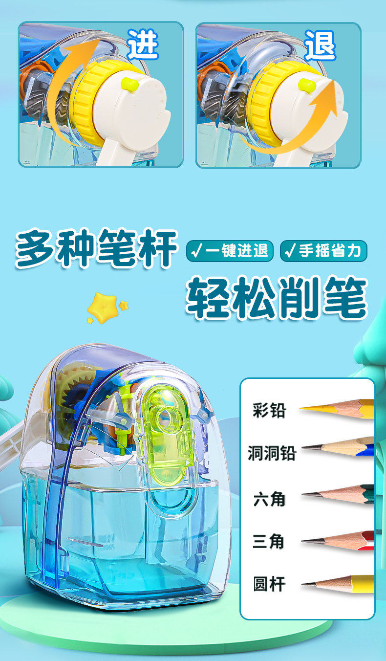 Morning Light High-Quality Transparent Visible Pencil Sharpener for Children in Kindergarten, Manual Pencil Sharpener, Semi-Transparent Pencil Sharpener, Automatic Lead-In and Lead-Out Pencil Sharpener, Pencil Sharpener for Elementary Students with Adjustable Thickness, Suitable for Art Students