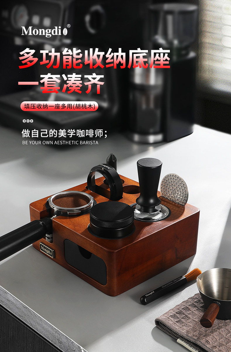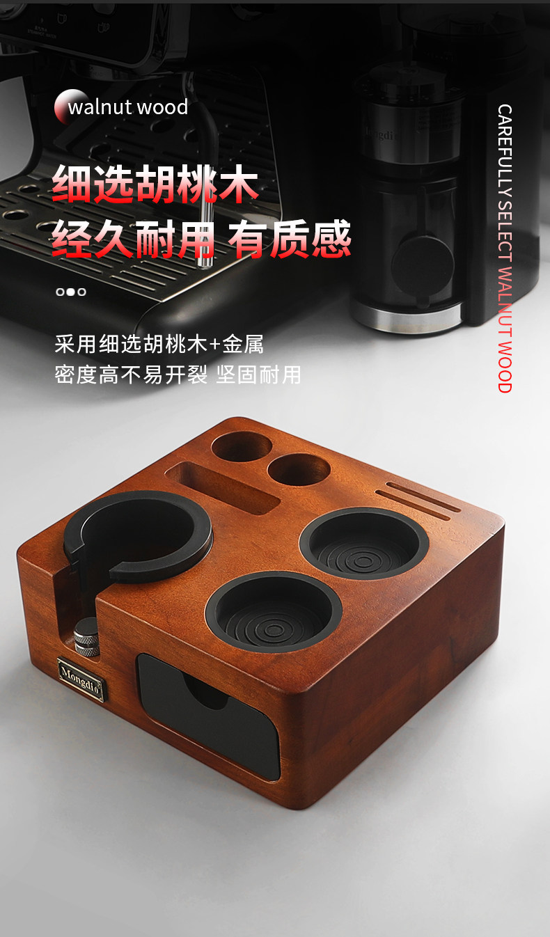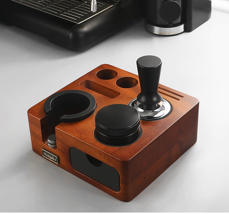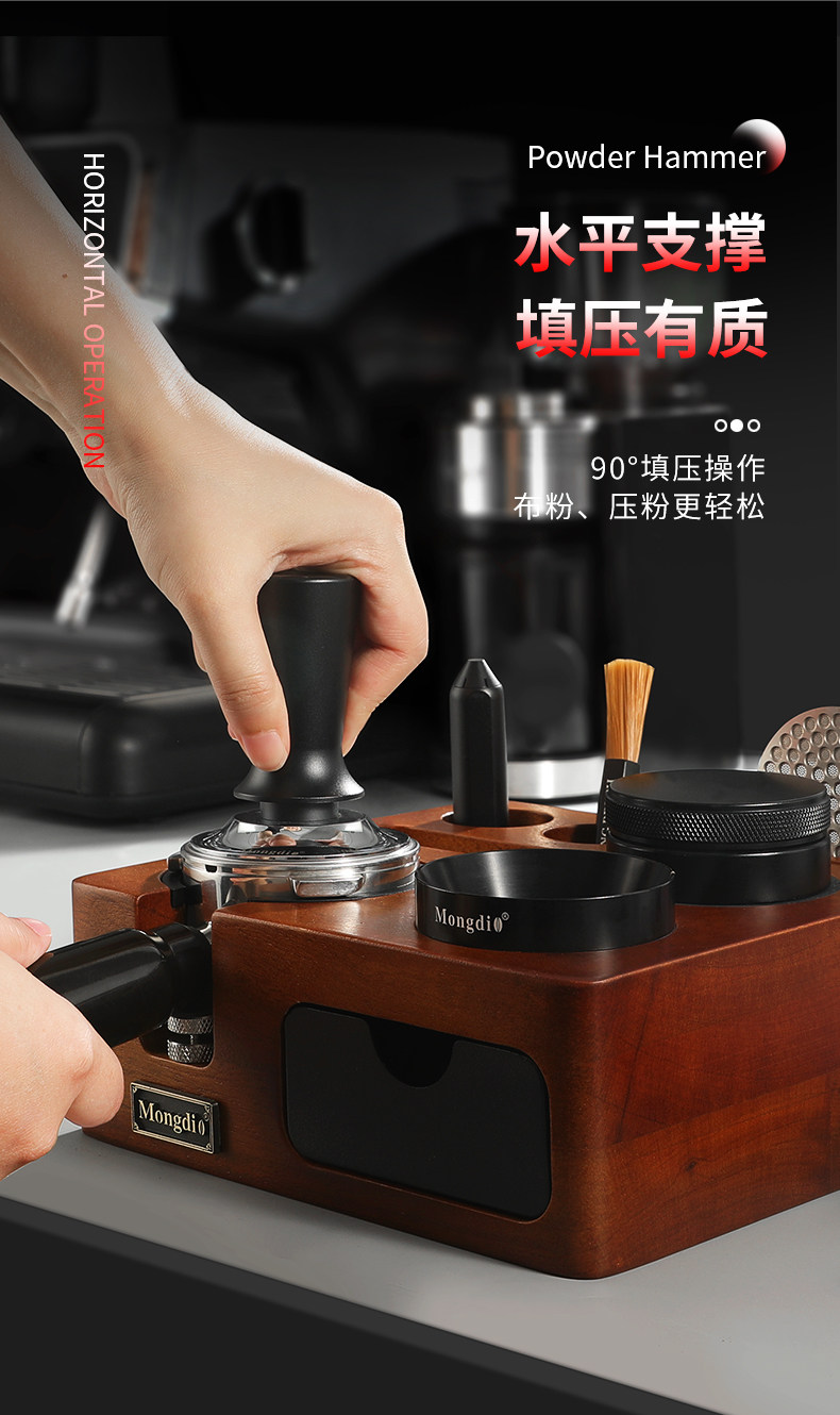 Mongdio Coffee Tamper Base Walnut Wood Espresso Tools Full Set Tamper Tamping Hammer