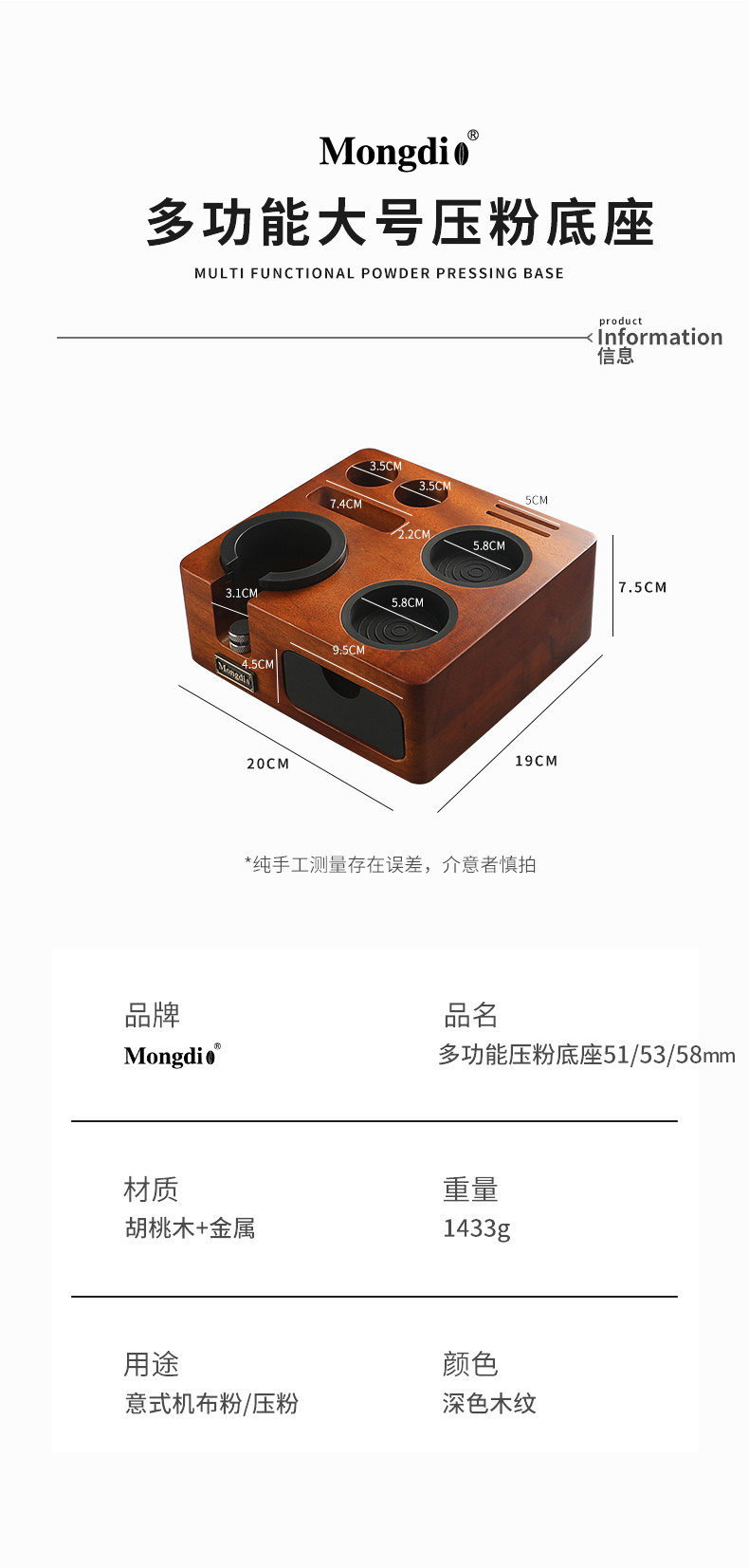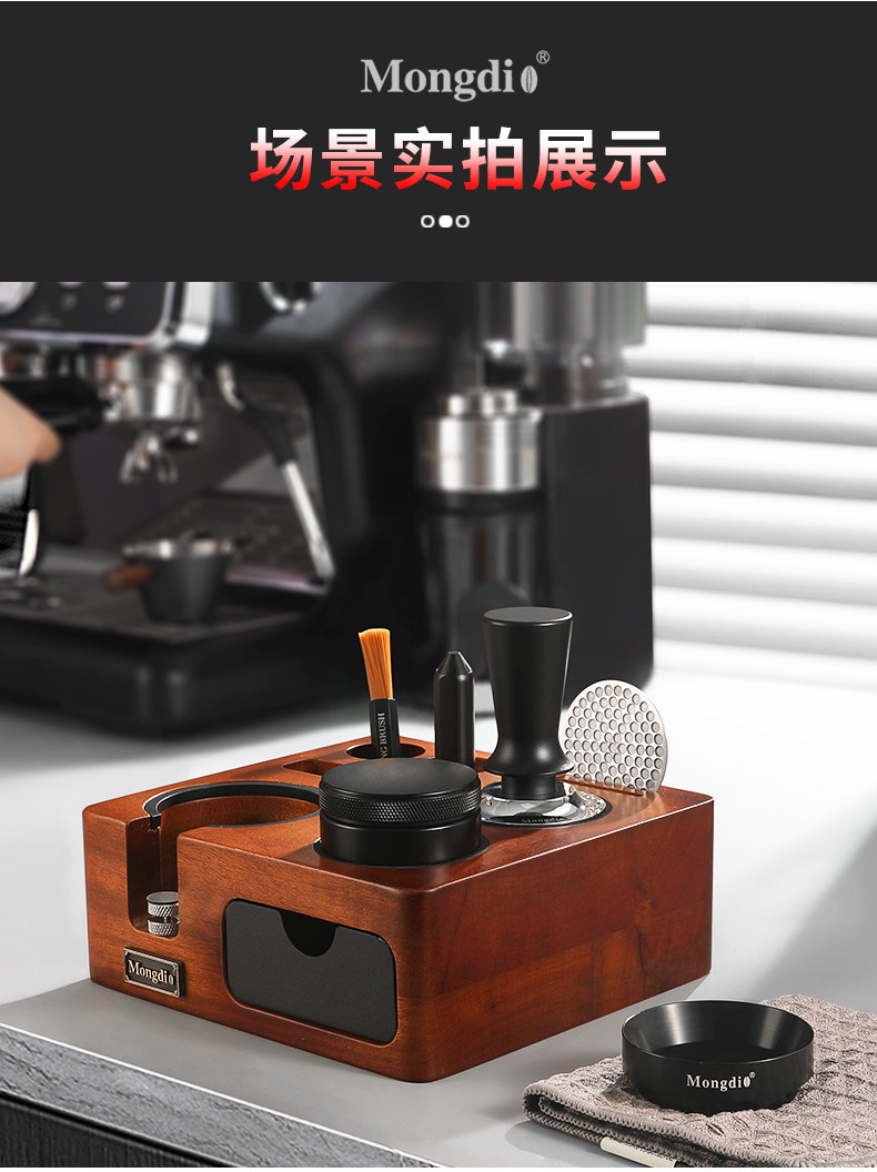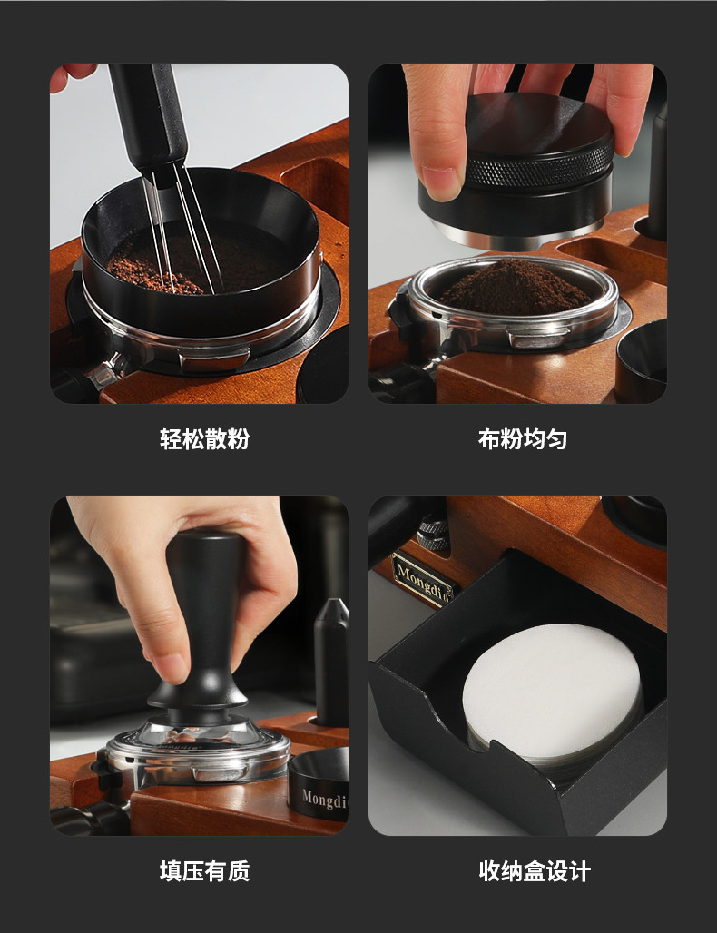 Mongdio Coffee Tamper Base Walnut Wood Espresso Tools Full Set Tamper Tamping Hammer