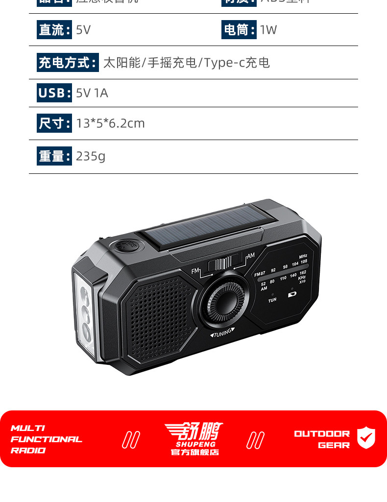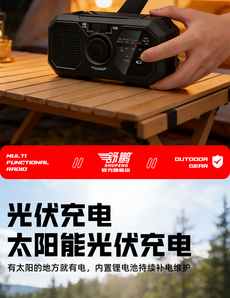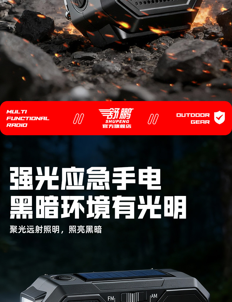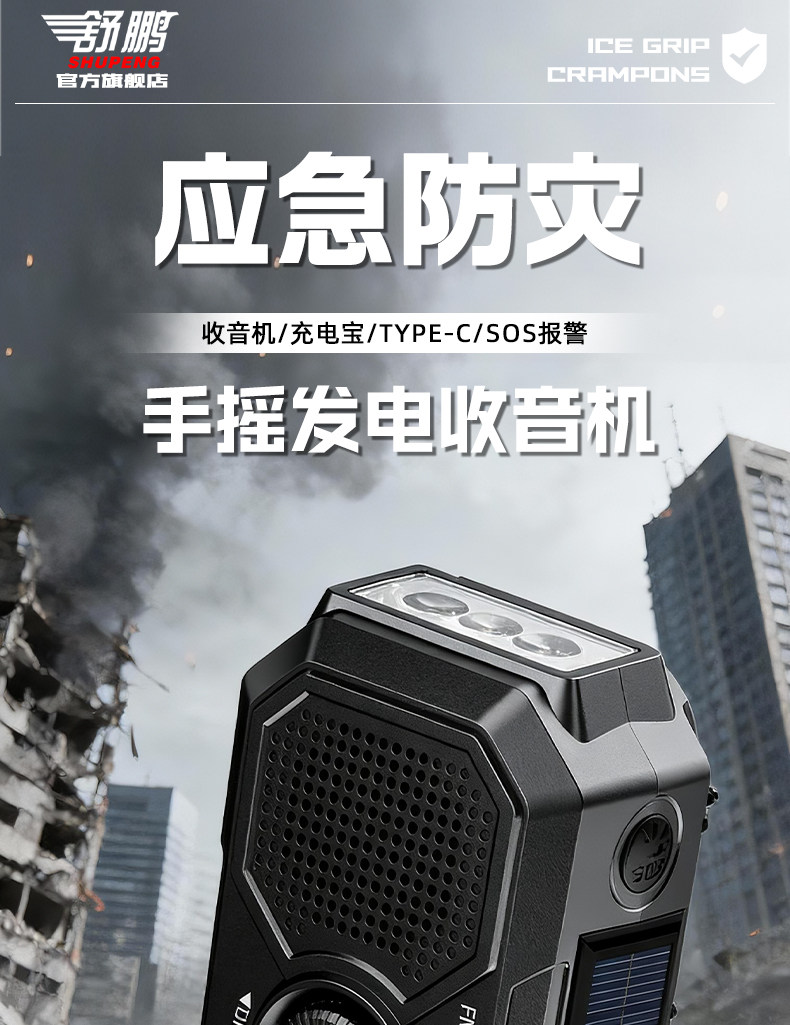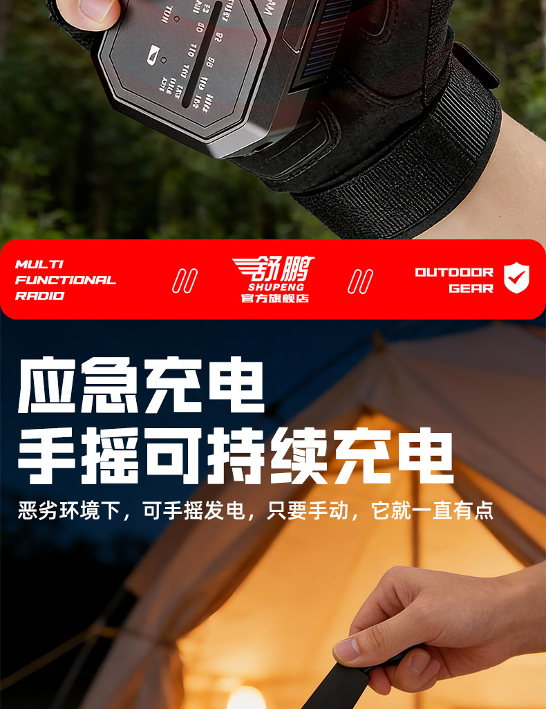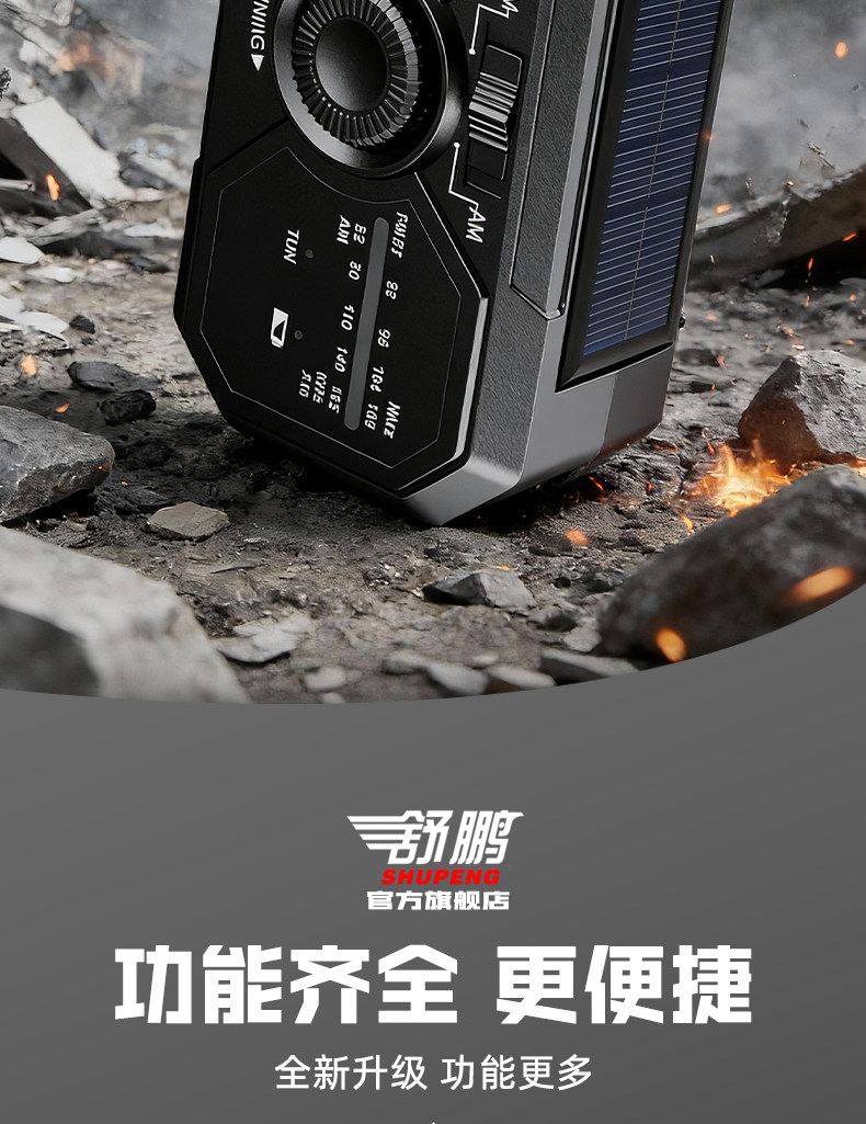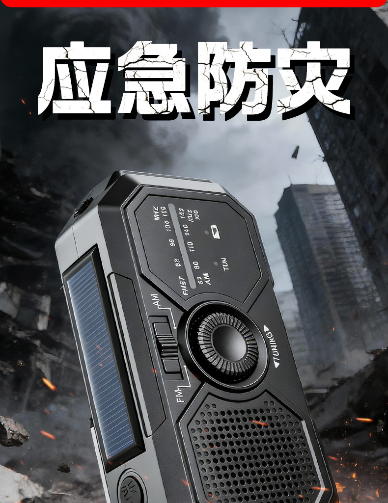 Emergency Disaster Prevention and Preparedness Solar-Powered Hand-Cranked Radio Power Bank Outdoor Multi-Functional Five-In-One Flashlight