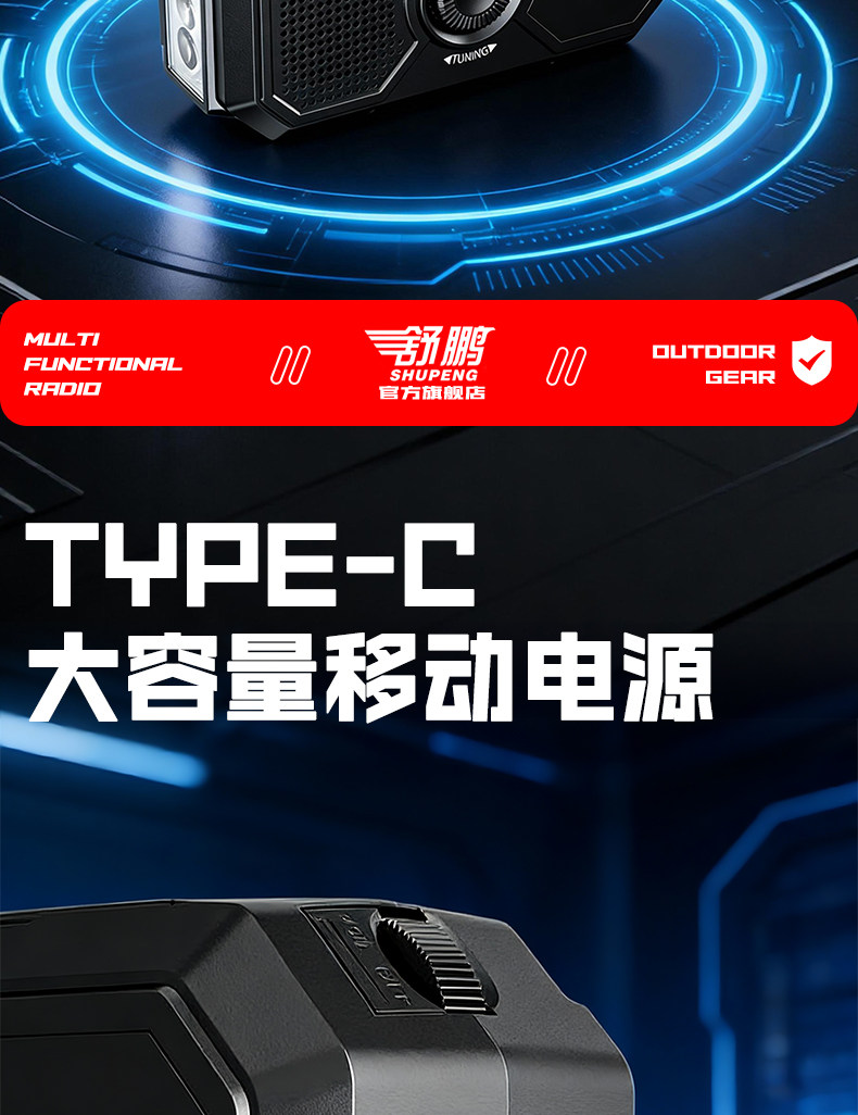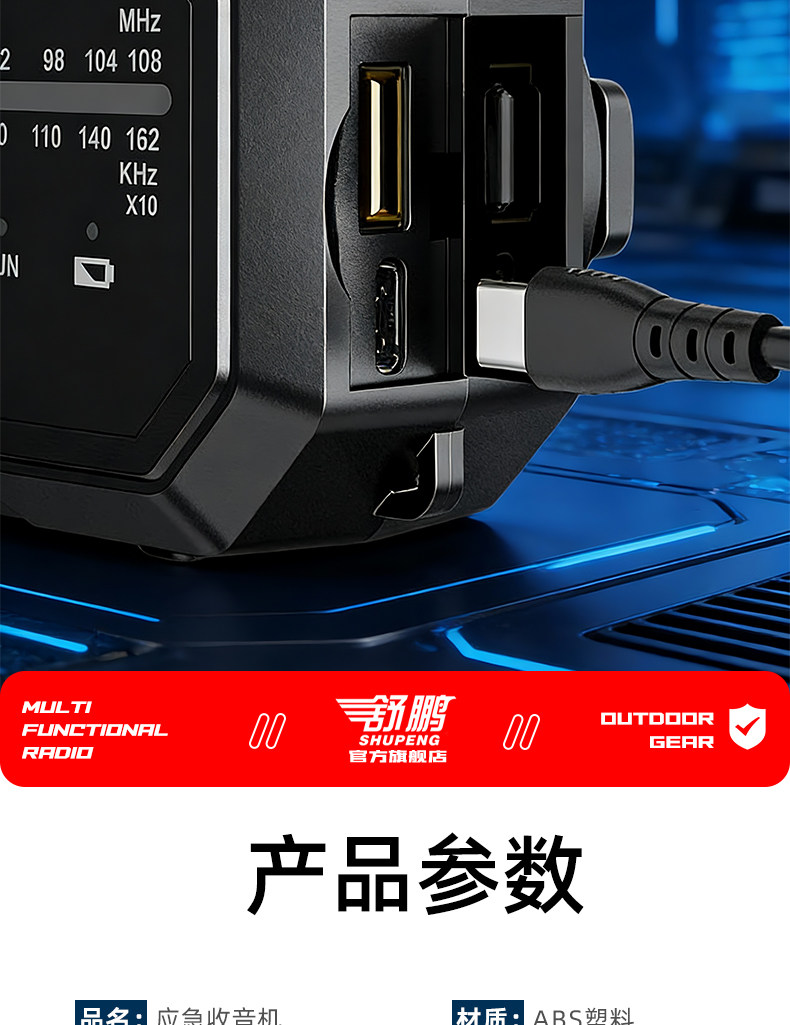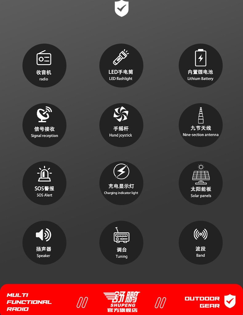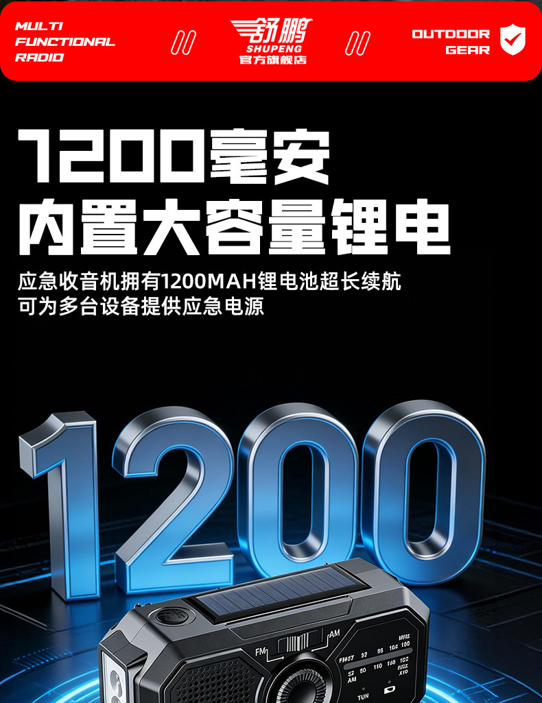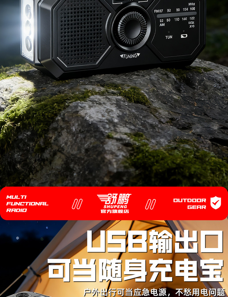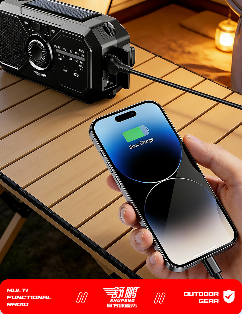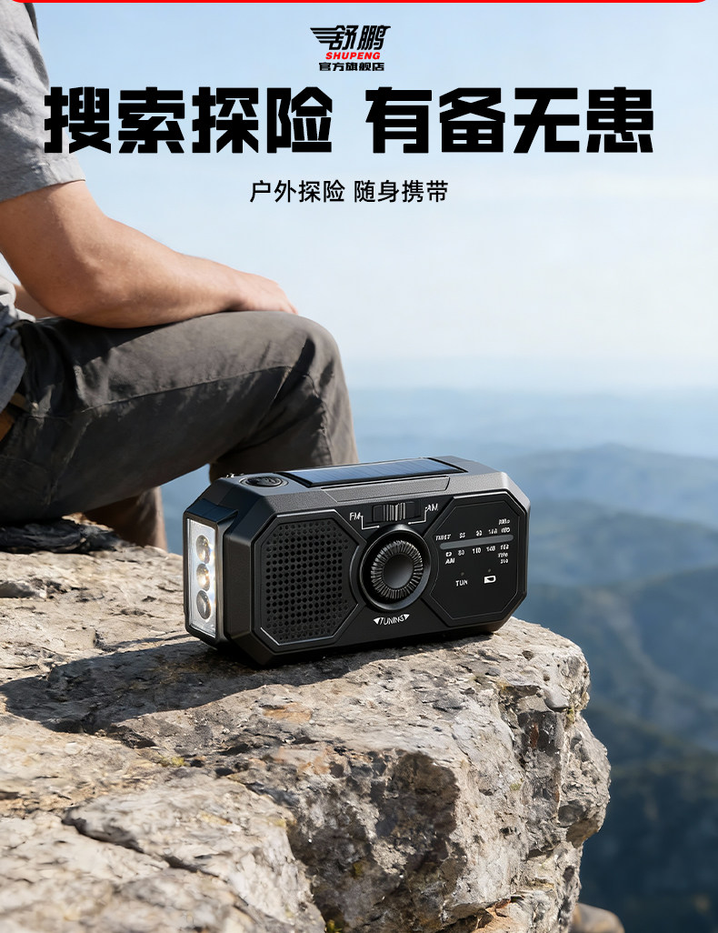 Emergency Disaster Prevention and Preparedness Solar-Powered Hand-Cranked Radio Power Bank Outdoor Multi-Functional Five-In-One Flashlight