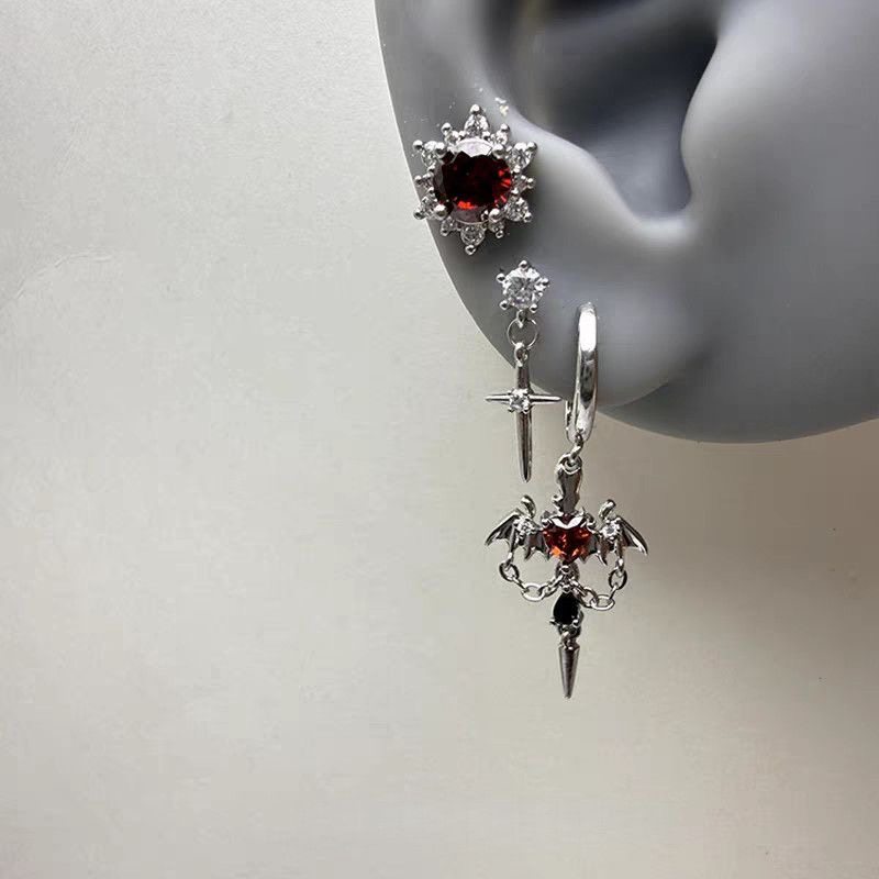| Color Classification | Devil Wings Love Earrings [Three-Piece Set],Devil Wings Love Earrings,Red Zircon Snowflake Ear Studs,Cross Pendant Ear Cuff,Devil Wings Love Earrings [Set of Two] |