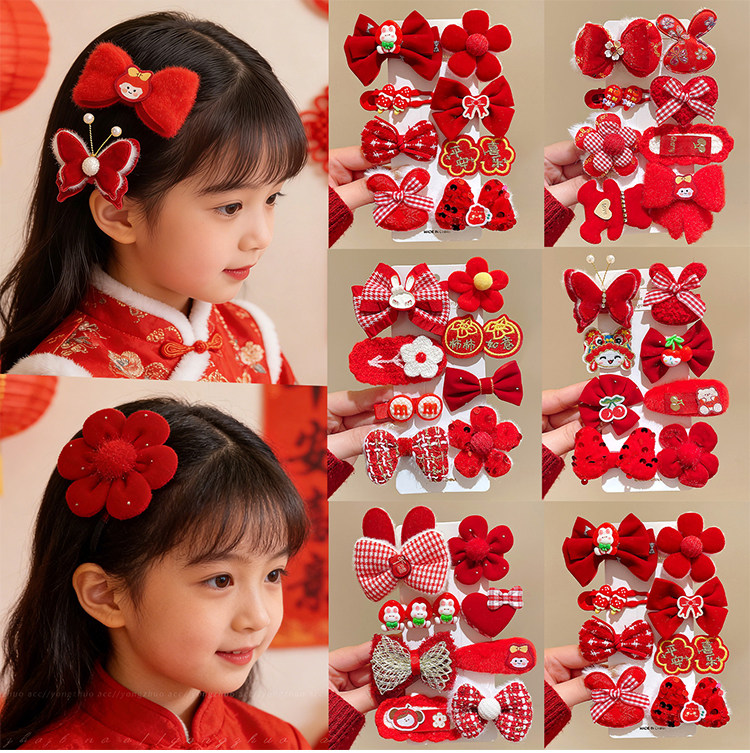 New Year Children's Hairpin Red Bow Duckbill Clip Hair Accessory Little Girl Bangs Side Clip Hairpin Hair Clip