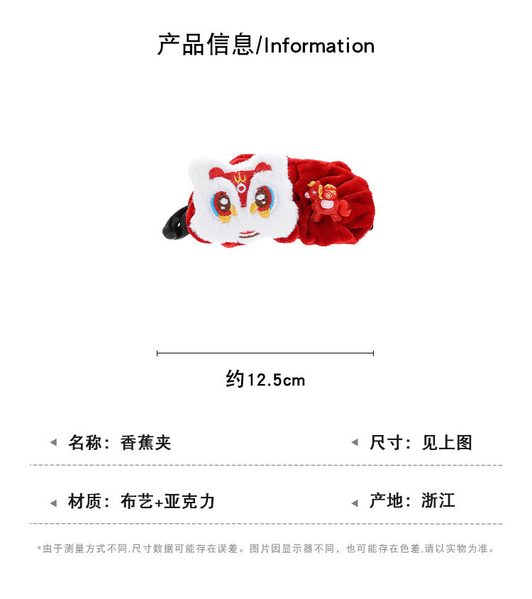 | Color Classification | 1#Good Luck Banana Clip - Approximately 12.5cm,2#Red Floral Banana Clip - Approximately 12.5cm,3#Banana Hair Clip - Approximately 12.5cm,4#Lucky Bag Banana Clip - Approximately 12.5cm,5#Little Pony Banana Clip - Approximately 12.5cm,6#Lion Dance Banana Clip - Approx. 12.5cm,7#Two Pieces: "Fa Zi" Character + Small Flower Design.,8#Hair Word + 2 Lucky Bags,9#"Fa Zi" + Good Luck 2-Piece Set,10#Hair Word + Pony 2 Pieces,11#Hair Word + Lion Awakening 2 Pieces,12#Little Pony + Lion Dance 2-Piece Set,13#Little Pony + Good Luck 2 Pieces,14#Little Pony + Lucky Bag 2 Pieces,15#2 Pieces of Pony + Flower,16#Lucky Bag + 2 Small Flower Items,17#Lucky Bag + Good Fortune 2-Piece Set,18#Lucky Bag + Lion Dance Set (2 Pieces),19#Small Flower + Lion Awakening 2 Pieces,20#2 Pieces of Small Flowers + Good Luck,21#Lion Dance + Good Luck 2-Piece Set,22#3 Pieces of Good Luck,23 # Lucky Star High Visibility 4-Piece Set |
