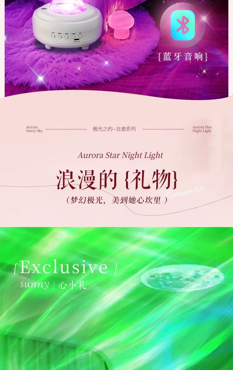 Northern Lights Starry Sky Projector Night Light Ambient Light Bedroom Mood Bluetooth Speaker Starry Sky Girl Birthday Gift