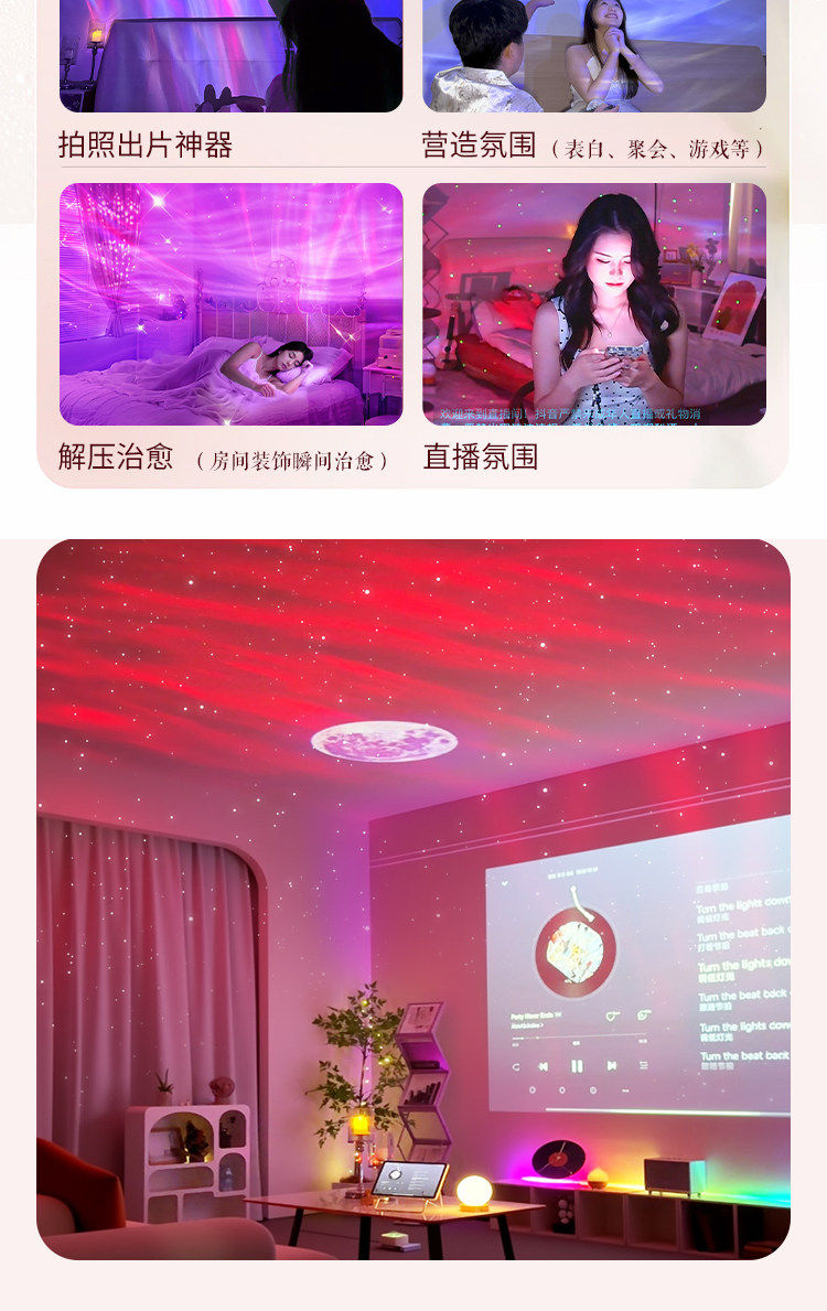 | Color Classification | [Add to Favorites] Get 5-Year Warranty,[Champions Recommend] Classy Quality, Trustworthy,Moonlight White [Charging Model] 360°Full Field Projection + 9D Stereo Sound Effect + Ultra-Clear Starry Sky Light Effect,Serenity Black [Charging Model] 360°Full Field Projection + 9D Stereo Sound Effect + Ultra-Clear Starry Sky Light Effect,Moonlight White [Remote Control Charging Model] 360°Full Field Projection + 9D Stereo Sound Effect + Ultra-Clear Starry Sky Light Effect,Serenity Black [Remote Control Charging Model] 360°Full Field Projection + 9D Stereo Sound Effect + Ultra-Clear Starry Sky Light Effect |