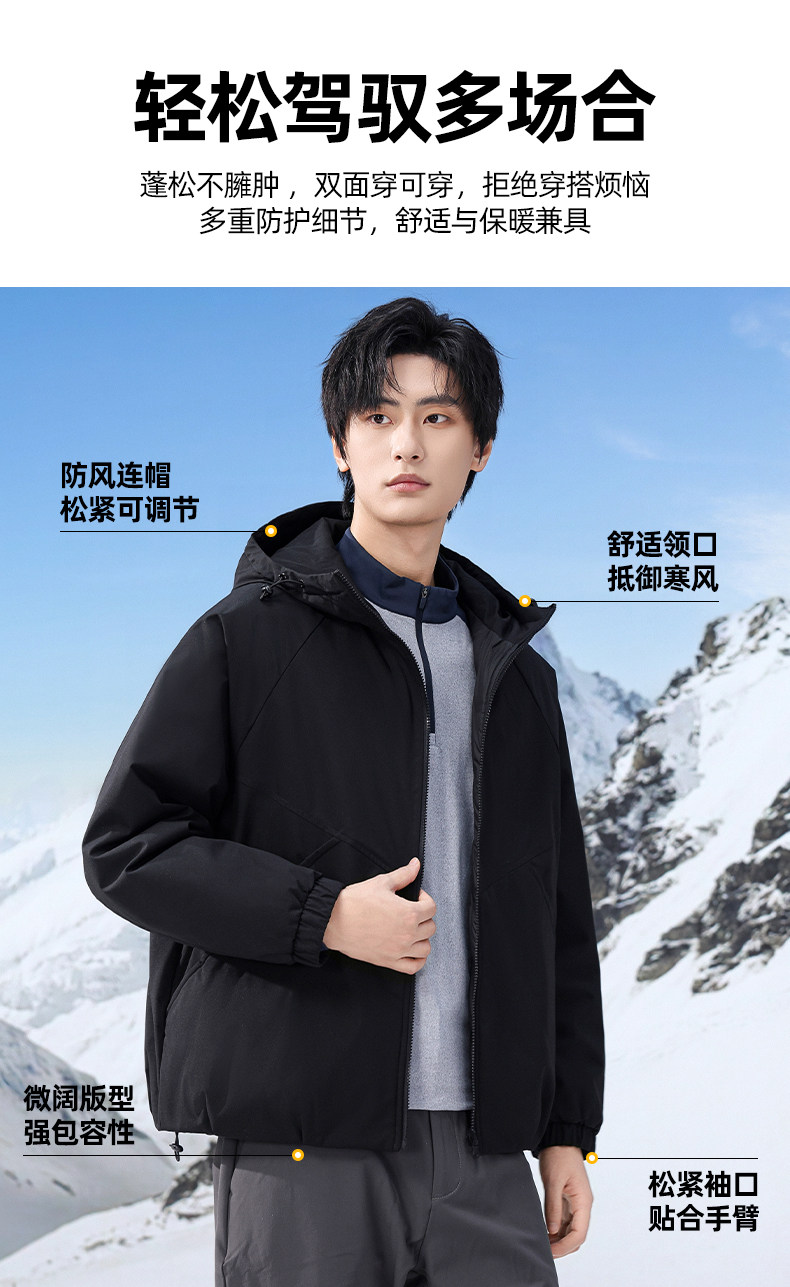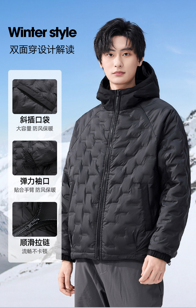 [Reversible]Romon Men's Trendy Fashion Short Hooded down Jacket 2025 Winter New Versatile Coat