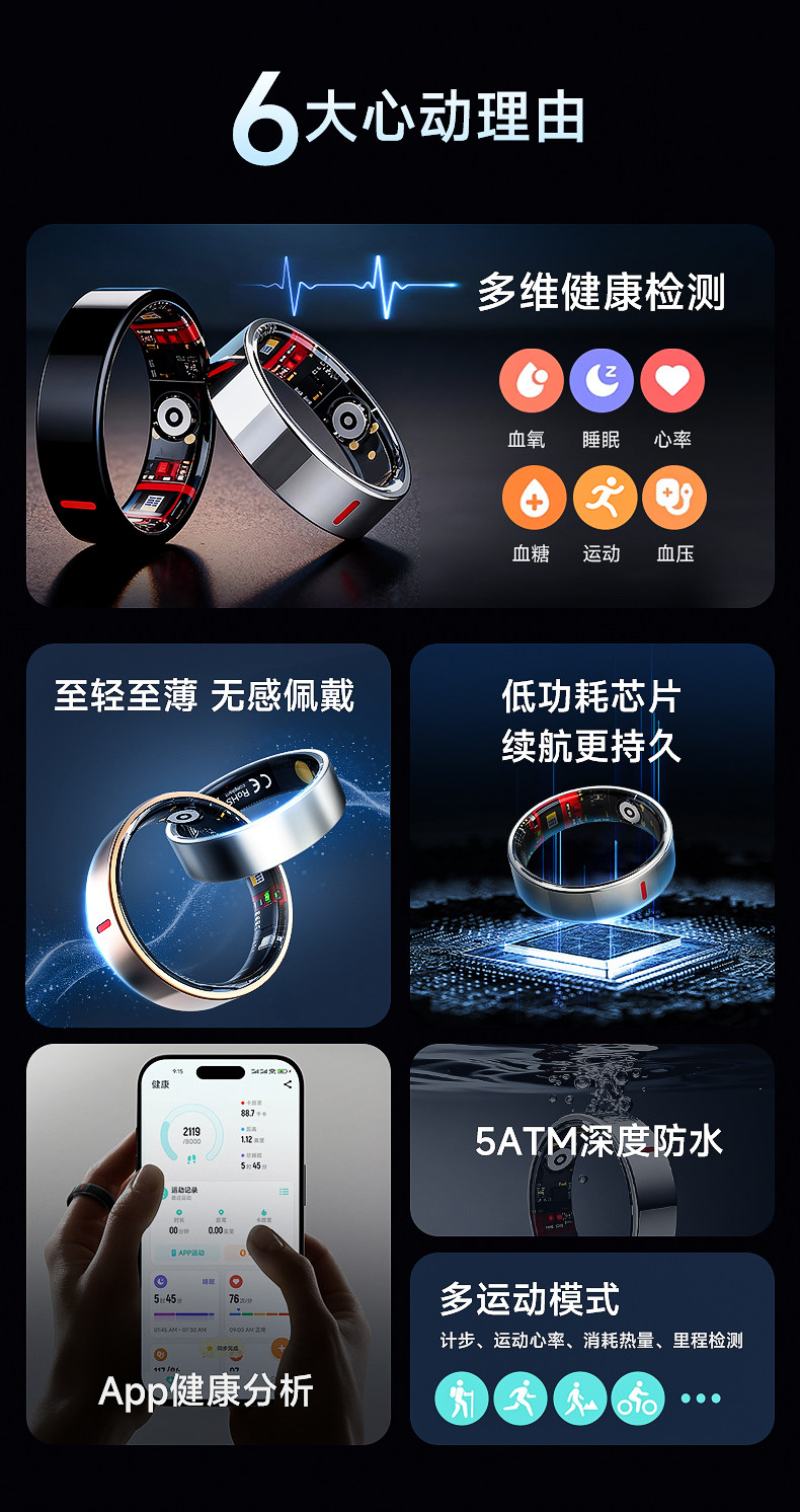 Kpep[Medical Flagship]Smart Ring Blood Oxygen Heart Rate Blood Pressure Heart Health Smart Ring Sleep Monitoring Remote Care Real-Time Monitoring Waterproof Sports Ultra-Thin Smart Health Ring