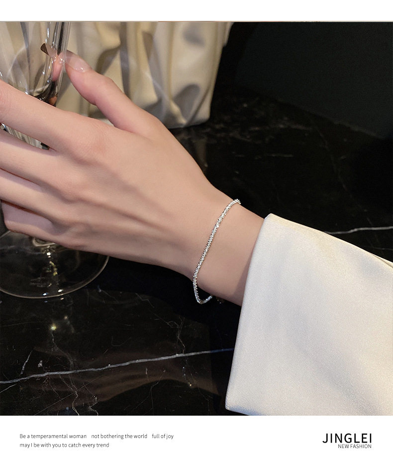 Silver Plain Circle Bracelet for Women, Summer Ins Niche Design, Fashionable and Simple Bracelet, Ins Cool Style, Sparkling Jewelry