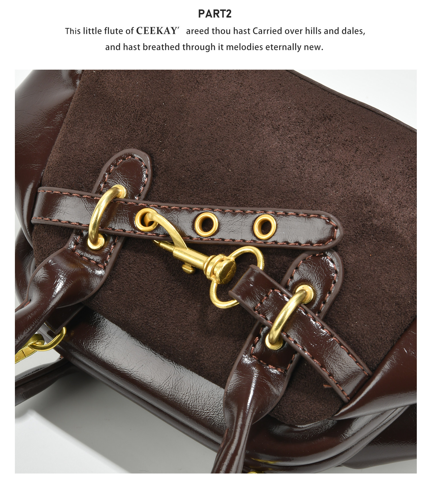 Ceekay Original Design Retro Motorcycle Bowling Bag for Women 2025 New Style Textured Niche Handbag Crossbody Bag