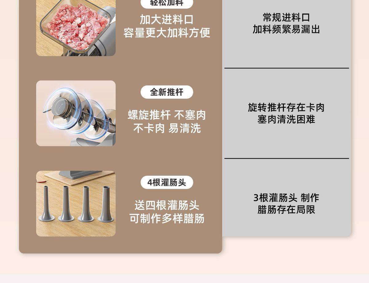 | Color Classification | High-Speed Operation, Powerful Motor, Accommodates Both Thick and Thin Casings, Features a Meat Press, and Offers Automatic Squeezing and Enema Filling with a Gentle Press,High-Speed Operation, Powerful Power, Thick and Thin Intestinal Tubes, Meat Sticks, Light Press, Automatic Squeezing and Enema [Glove Cotton Thread],High-Speed Operation, Powerful Power, Thick and Thin Sausage Tubes, Press the Meat Stick, Press Lightly to Automatically Squeeze and Enema [1 Pack of Sausage Casings, Gloves and Cotton Thread],High-Speed Operation, Powerful Power, Thick and Thin Sausage Tubes, Press the Meat Stick, Press Lightly to Automatically Squeeze and Enema [2 Packs of Casings, Gloves and Cotton Thread],High-Speed Operation, Powerful Power, Thick and Thin Sausage Tubes, Press the Meat Stick, Press Lightly to Automatically Squeeze and Enema [3 Packs of Casings, Gloves and Cotton Thread],High-Speed Operation, Powerful Power, Thick and Thin Sausage Tubes, Press the Meat Stick, Press Lightly to Automatically Squeeze and Enema [4 Packs of Casings, Gloves and Cotton Thread],High-Speed Operation, Powerful Power, Thick and Thin Sausage Tubes, Press the Meat Stick, Press Lightly to Automatically Squeeze and Enema [5 Packs of Casings, Gloves and Cotton Thread],High-Speed Operation, Powerful Power, Thick and Thin Sausage Tubes, Press the Meat Stick, Press Lightly to Automatically Squeeze and Enema [7 Packs of Casings, Gloves and Cotton Thread],High-Speed Operation, Powerful Power, Thick and Thin Sausage Tubes, Press the Meat Stick, Press Lightly to Automatically Squeeze and Enema [10 Packs of Casings and Gloves] |