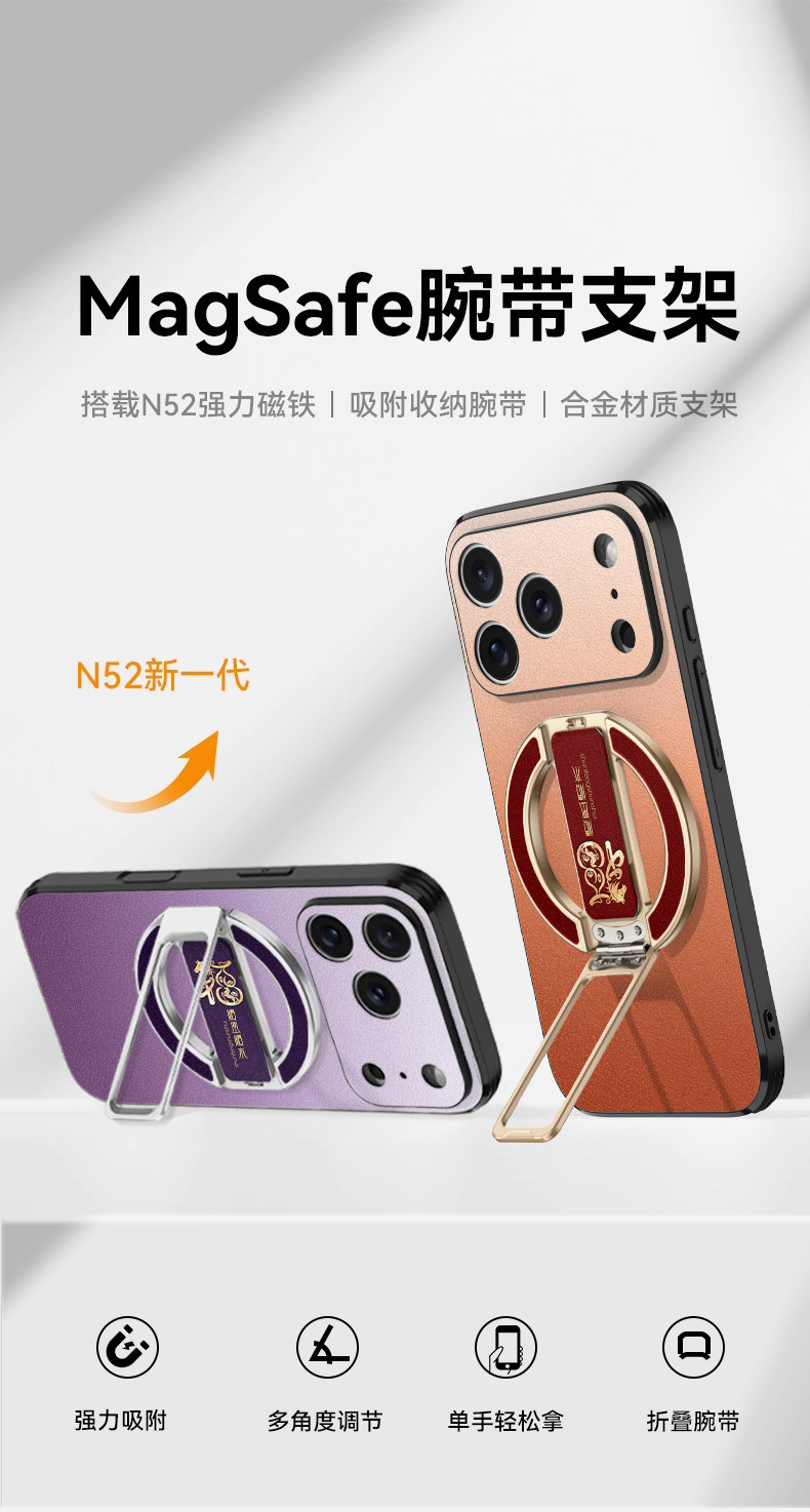 Ruihong Fu Character Magnetic Wristband Phone Holder, New Year Chinese Style Creative Multifunctional 2-in-1 Ring Buckle, Detachable Magsafe Strong Magnetic Attachment, Suitable for Multiple Scenarios, Support and Fixation, Convenient