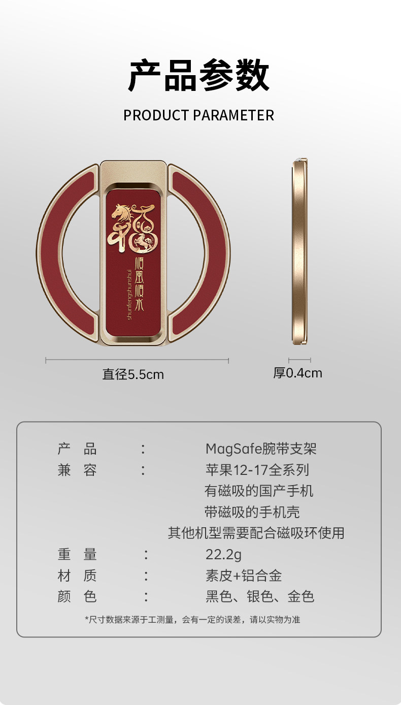 | Item Number | Ruihong Fu Character Horse Magnetic Wristband Mobile Phone Holder |