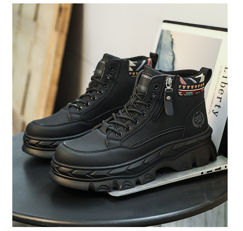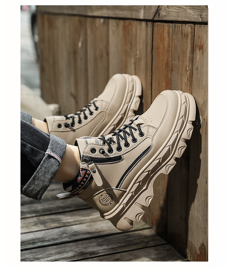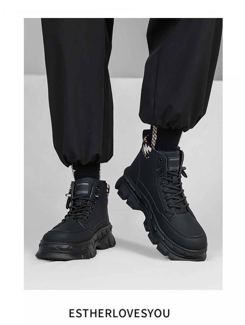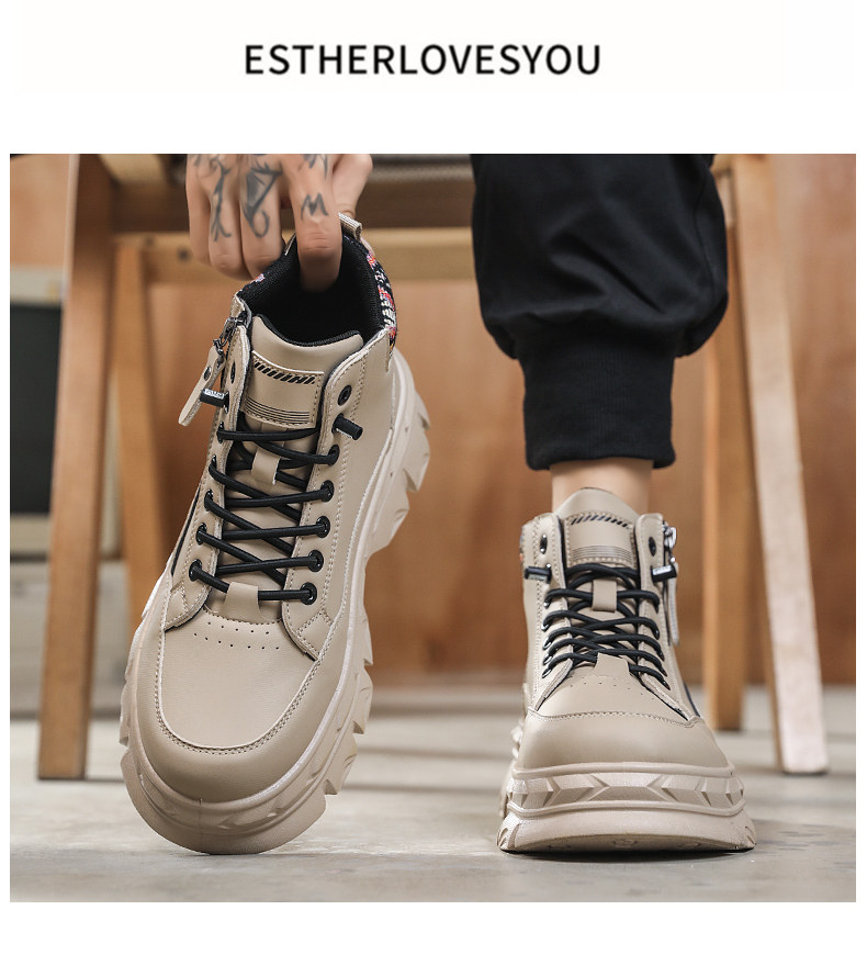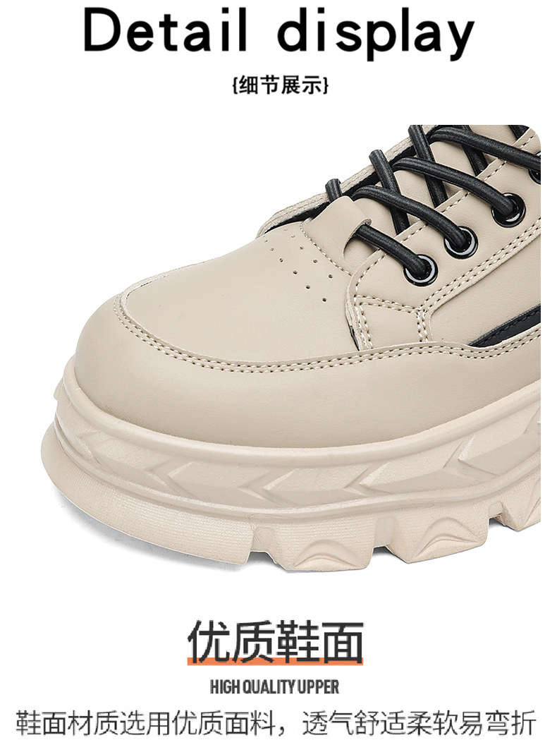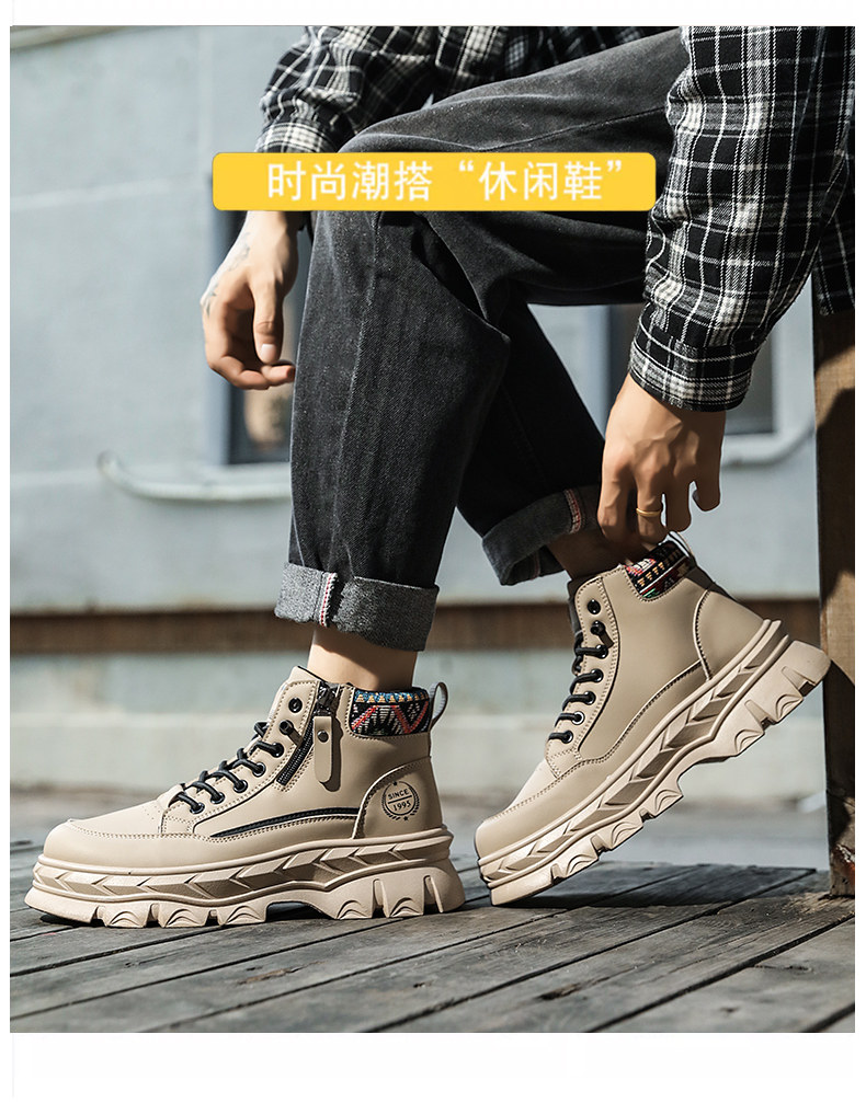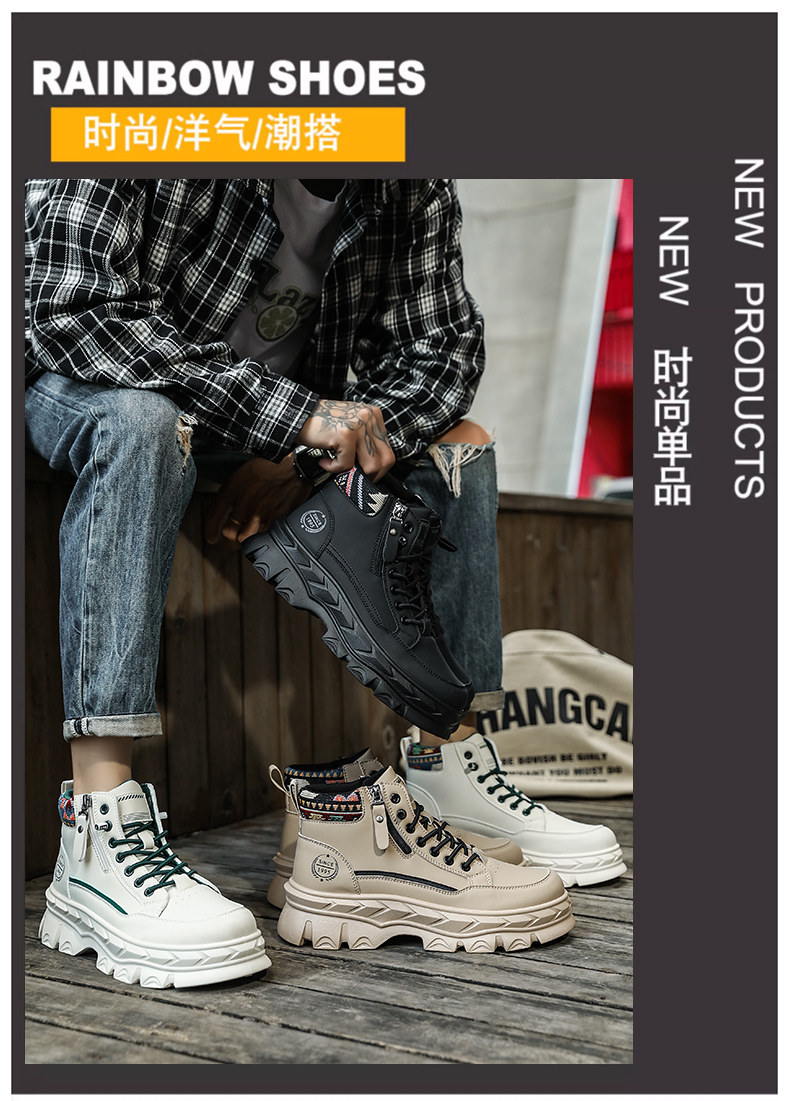 High-Top Men's Shoes, Winter 2025 New Trendy Brand Versatile Leather Work Boots, Men's Thick-Soled Height-Increasing White Martin Boots