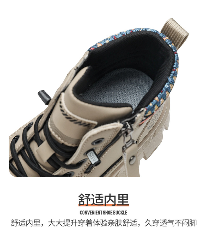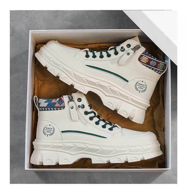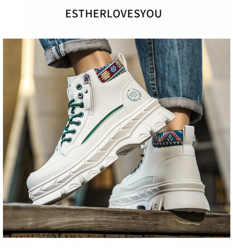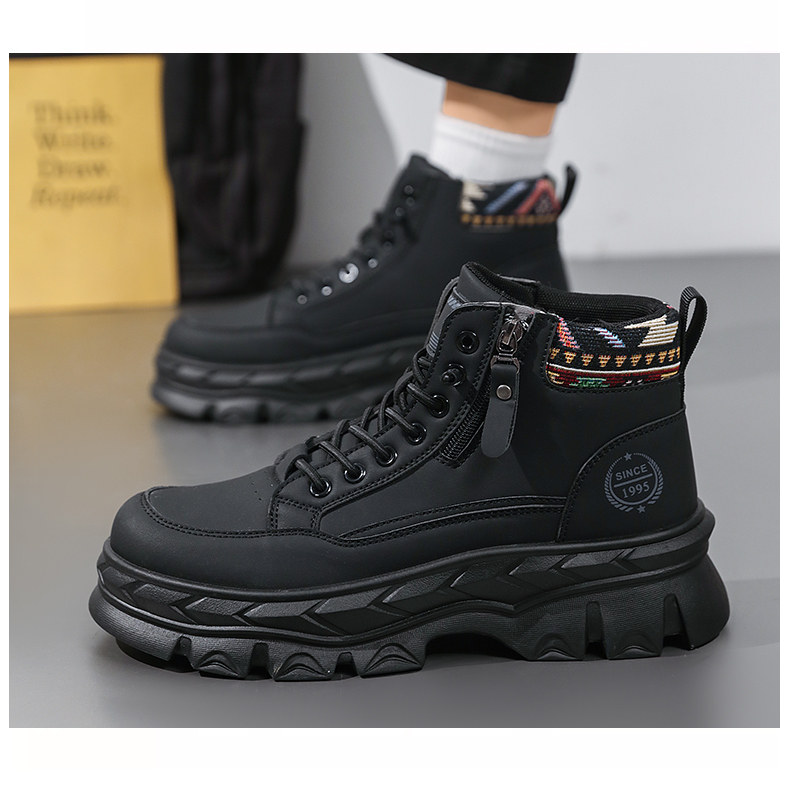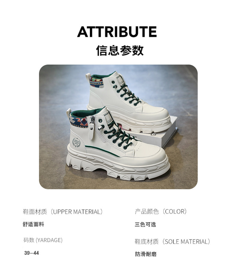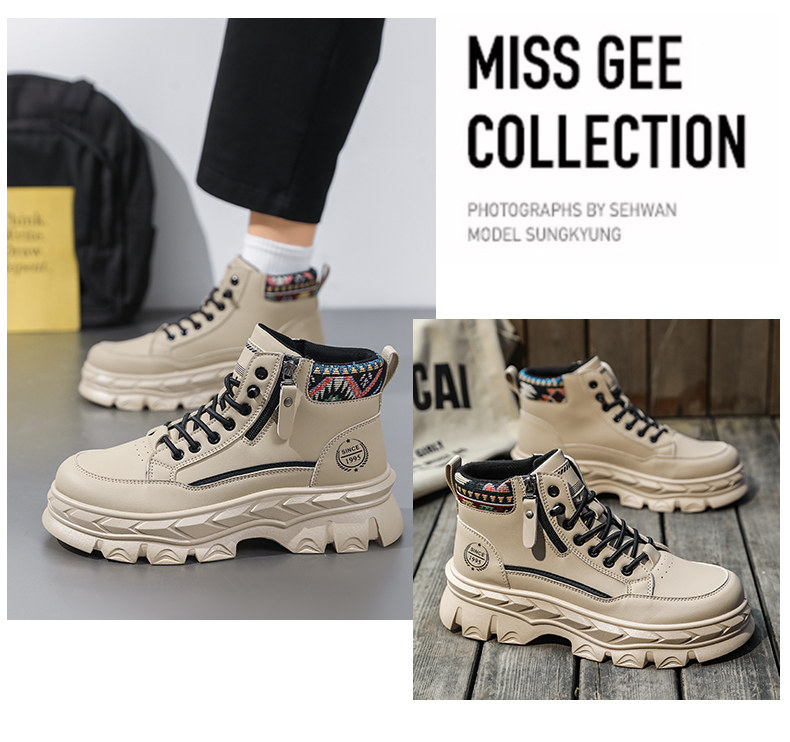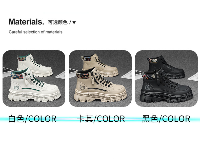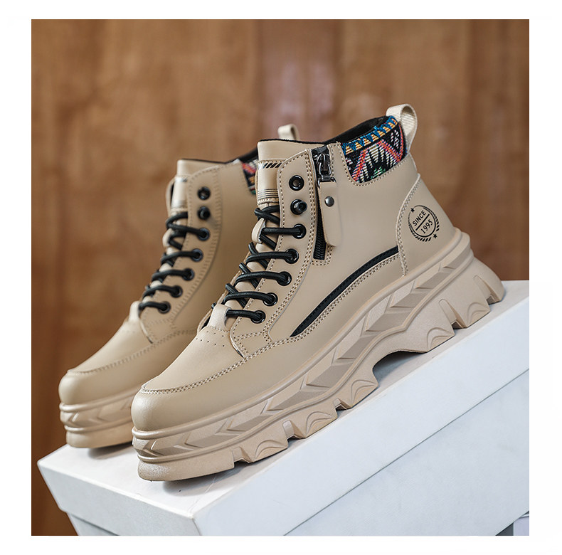 High-Top Men's Shoes, Winter 2025 New Trendy Brand Versatile Leather Work Boots, Men's Thick-Soled Height-Increasing White Martin Boots