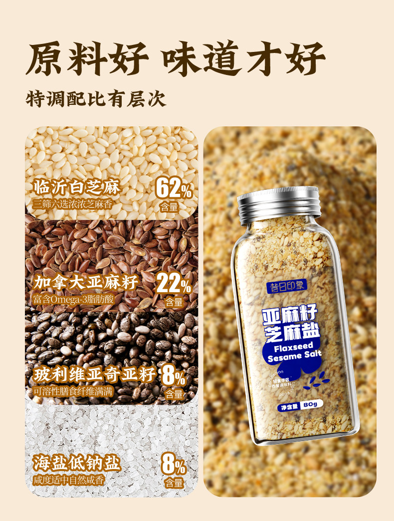 Flaxseed Sesame Salt Official Flagship Store, No Additives, Imported Seasoning, Salad, Fitness Light Meal, for Sandwiches, Noodles